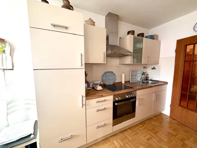 Die Wohnung verfügt über ein helles Wohnzimmer mit Zugang zum Balkon, ein gut geschnittenes Schlafzimmer, eine funktionale Einbauküche mit Essecke sowie ein Bad mit Dusche und Platz für Waschmaschine und Trockner.
