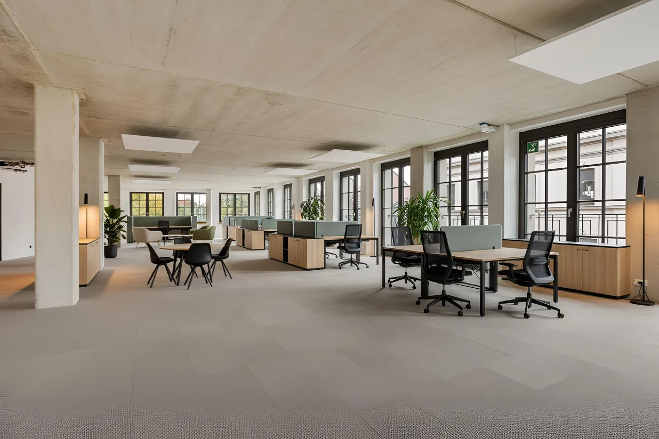 Die Mietfläche 4 im modernen Neubauprojekt Et Bröckske bietet mit rund 376 m² eine repräsentative und vielseitig nutzbare Bürofläche im 2. Obergeschoss mitten im Herzen der pulsierenden Krefelder Innenstadt. Die dreiseitige Fensterfront sorgt für lichtdurchflutete Arbeitsbereiche und schafft eine offene, einladende Atmosphäre.