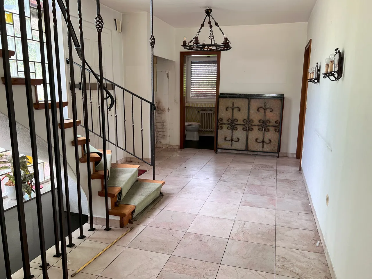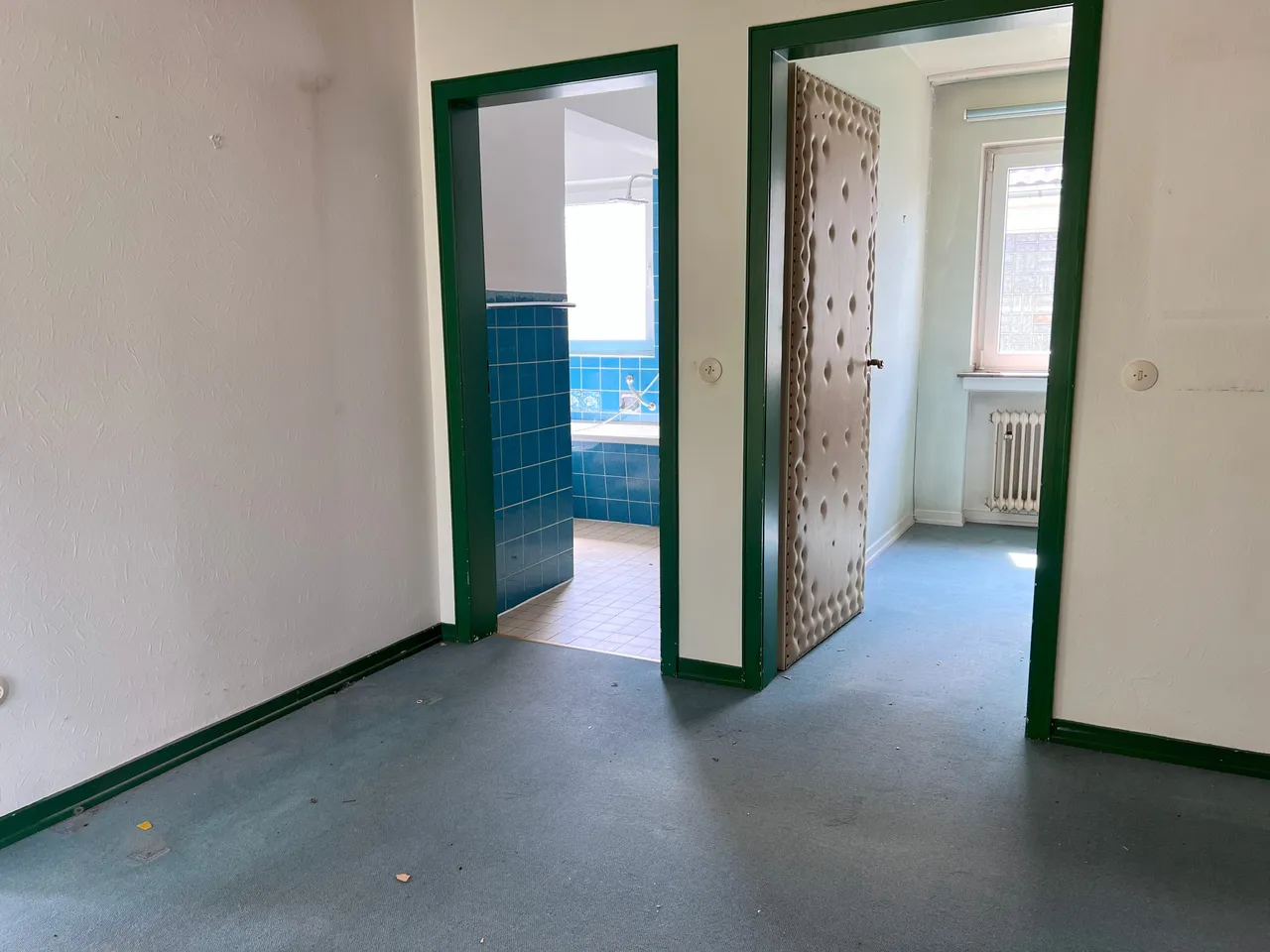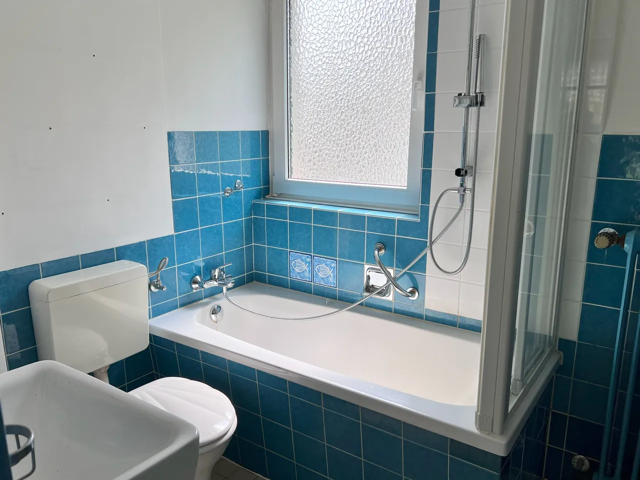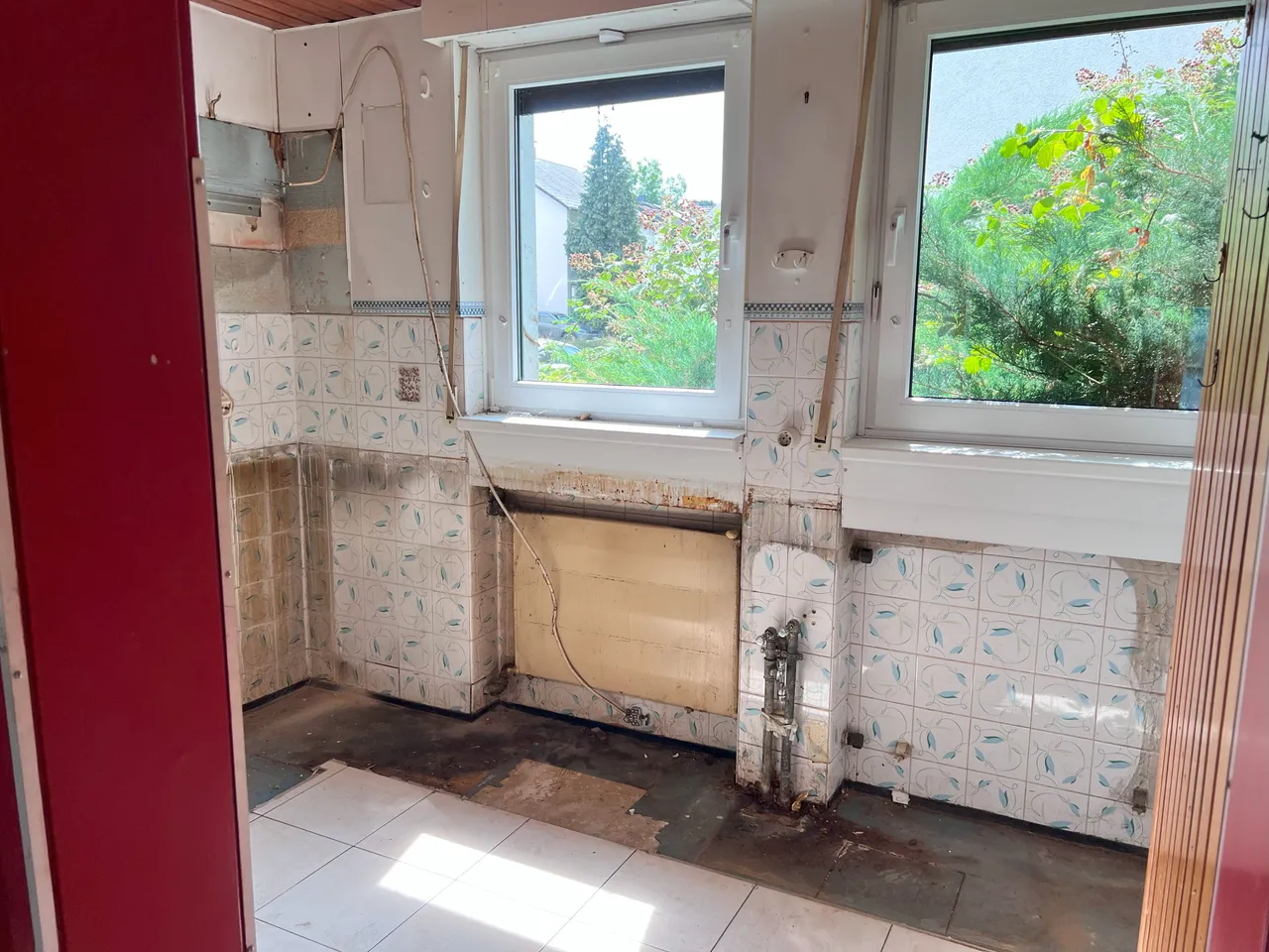 Das freistehende und komplett unterkellerte Einfamilienhaus besticht durch den Charme der 1960er Jahre. Vom Erdgeschoss mit geräumiger Diele, großem Wohn-/Esszimmer, Gäste-WC und Küche mit Vorraum und Abstellkammer führt eine geschwungene Treppe ins Obergeschoss mit 4 Zimmern zwei Bädern und einem Balkon. Der Garten ist eben und vielfältig nutzbar; zum Haus gehört eine Garage mit rückwärtigem überdachten Freisitz sowie Stellplätzen vor der Garage. Das Haus ist renovierungs- und sanierungsbedürftig.