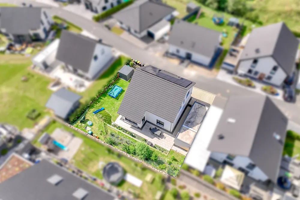 Dieses moderne Einfamilienhaus in Much-Marienfeld, errichtet im Jahr 2020 in hochwertiger Hansehaus-Holzständerbauweise, bietet auf rund 170 m² Wohnfläche ein lichtdurchflutetes und durchdachtes Zuhause für Familien. Das 467 m² große Grundstück mit Terrasse, gepflegtem Garten und modernem Gartenhaus schafft den idealen Raum für entspannte Stunden im Freien.