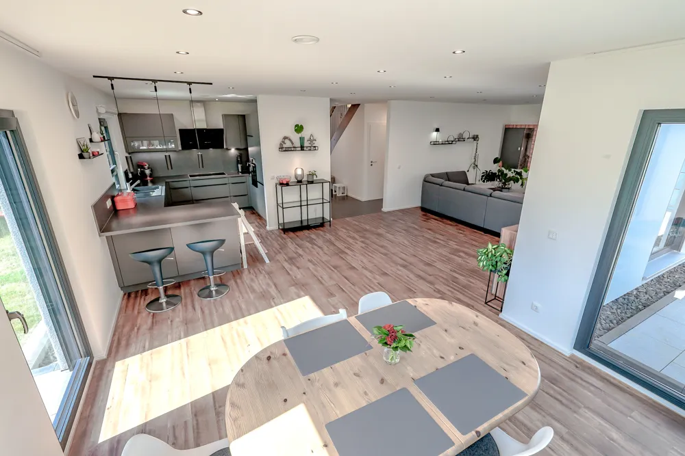 Mit seiner Kombination aus großzügigem Grundriss, moderner Ausstattung und energieeffizienter Technik bietet dieses Haus ein erstklassiges Zuhause, das keine Wünsche offen lässt.