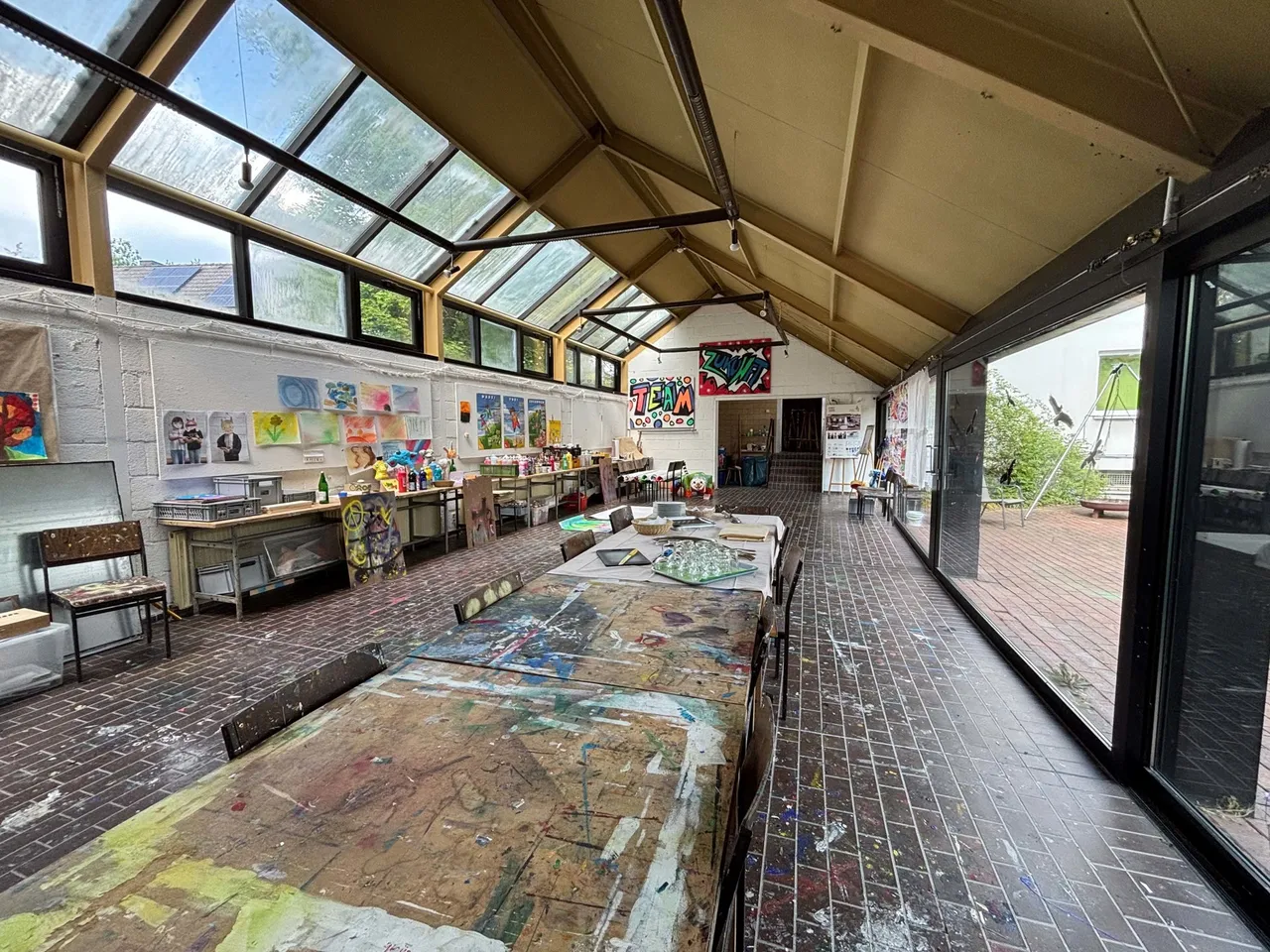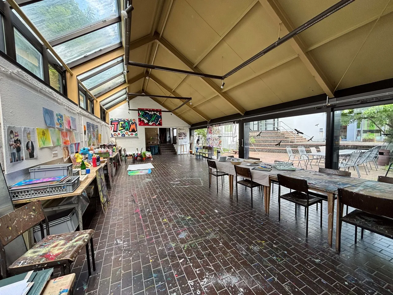 Flexibel nutzbare Konferenzbereiche – hier finden je nach Raumkonfiguration bis zu 150 Personen Platz – 7 Gruppenarbeitsräume, der großzügige Hörsaal, ein Ruhebereich, ein Atelier, ein Werkraum, zwei Speisesäle sowie eine professionell ausgestattete Großküche gehören ebenfalls zum großzügigen Raumangebot. Zur Liegenschaft gehören außerdem 6 Garagen und rund 40 Stellplätze, die ausreichend Parkmöglichkeiten für Teilnehmende, Mitarbeitende und Gäste bieten.