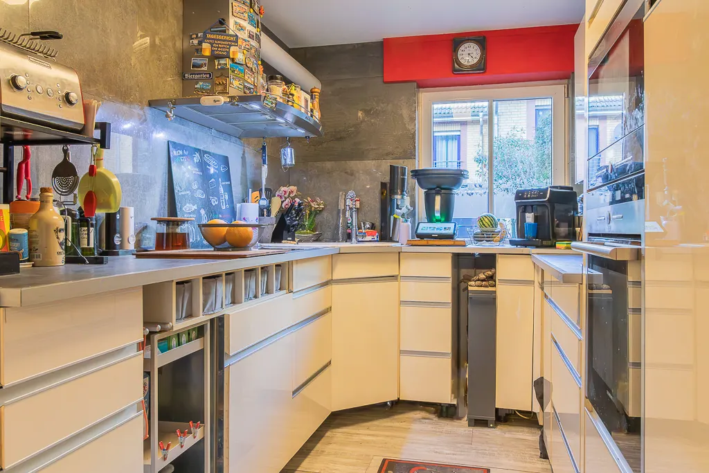 Der Zugang zum Haus führt über eine Stufen in das Erdgeschoss, das sich in eine Diele, ein Gäste-WC, die offene Küche sowie das großzügige Wohnzimmer gliedert. An dieses wurde vor Kurzem ein hochwertiger Wintergarten angebaut, der den Wohnbereich erweitert und ein lichtdurchflutetes Ambiente schafft.