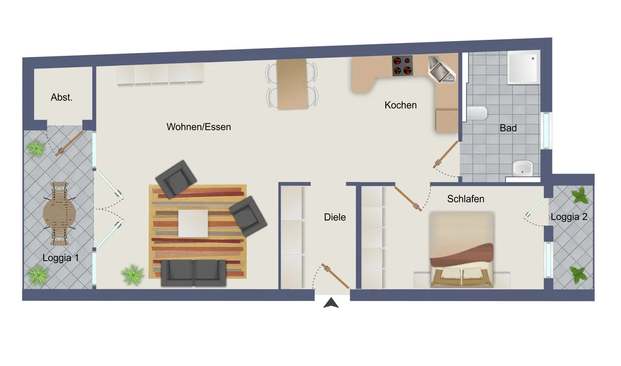 Zwei-Raum-Wohnung mit insgesamt 74m² Wohnfläche