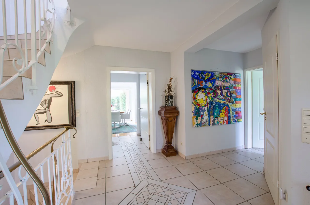 Willkommen in Ihrem zukünftigen Traumhaus! Diese beeindruckende Immobilie aus dem Jahr 1993 vereint modernen Komfort mit großzügigem Raumangebot und bietet Ihnen alles, was das Herz begehrt. Die gut durchdachte Grundrissplanung mit einer Wohnfläche von gesamt ca.310 m² erstreckt sich über zwei Etagen mit 2 separaten Wohneinheiten. Diese bieten Ihnen genügend Platz für die ganze Familie oder Mehrgenerationen unter einem Dach. Dazu gehört eine bereits vermietete Einliegerwohnung im Kellergeschoss mit ca. 62 m². Die Wohnung ist aktuell für 550 EUR im Monat vermietet.