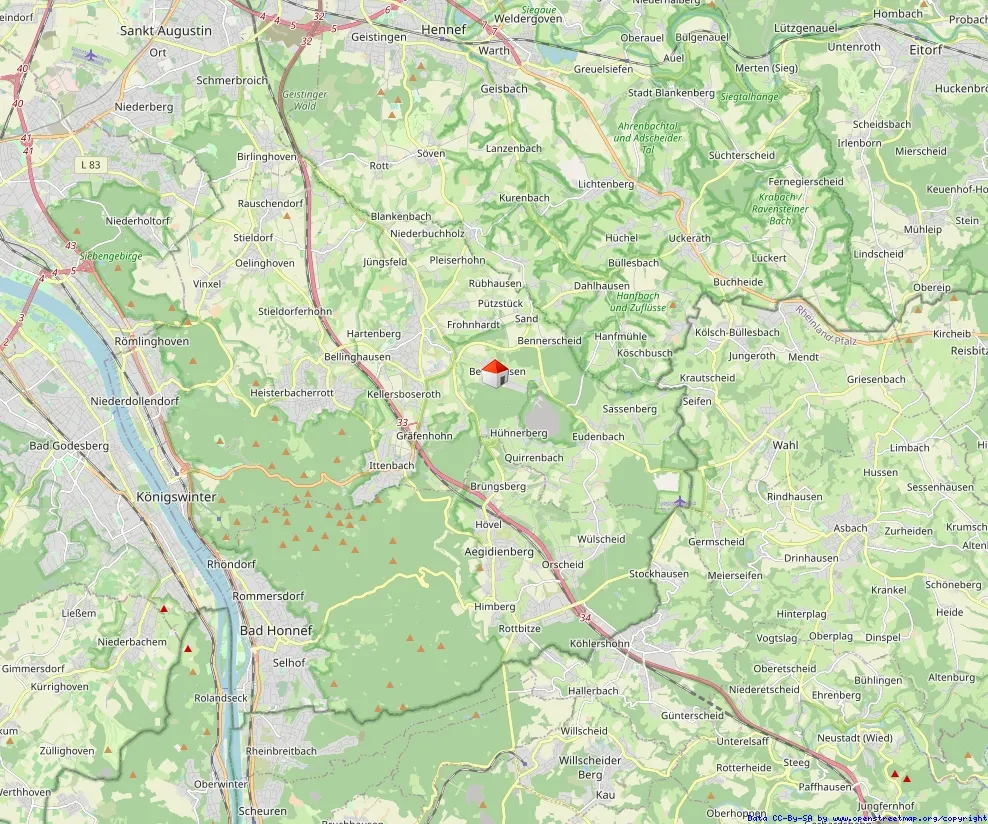 Die Wohnung befindet sich in 53639 Königswinter im idyllischen Ortsteil Berghausen, in einer besonders ruhigen und naturnahen Höhenlage oberhalb des beliebten Ortsteils Oberpleis. Die Umgebung ist geprägt von Wiesen, sanften Hügeln und einem herrlichen Blick in Richtung des Siebengebirge sowie zum markanten Oelberg.