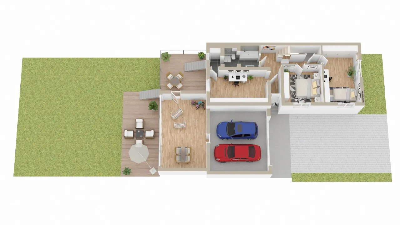 Terrassen: Eine am Ausgang vom Bad und eine im Garten