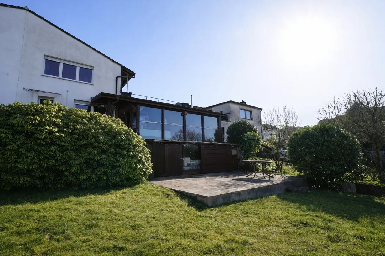 Der Garten bietet eine grüne Rückzugsoase und lädt zum Verweilen im Freien ein. Zusätzlich steht Ihnen ein 1989 angebauter und beheizter Wintergarten zur Verfügung, der sowohl vom Garten als auch über die Doppelgarage zugänglich ist und einen schönen Blick ins Grüne ermöglicht.