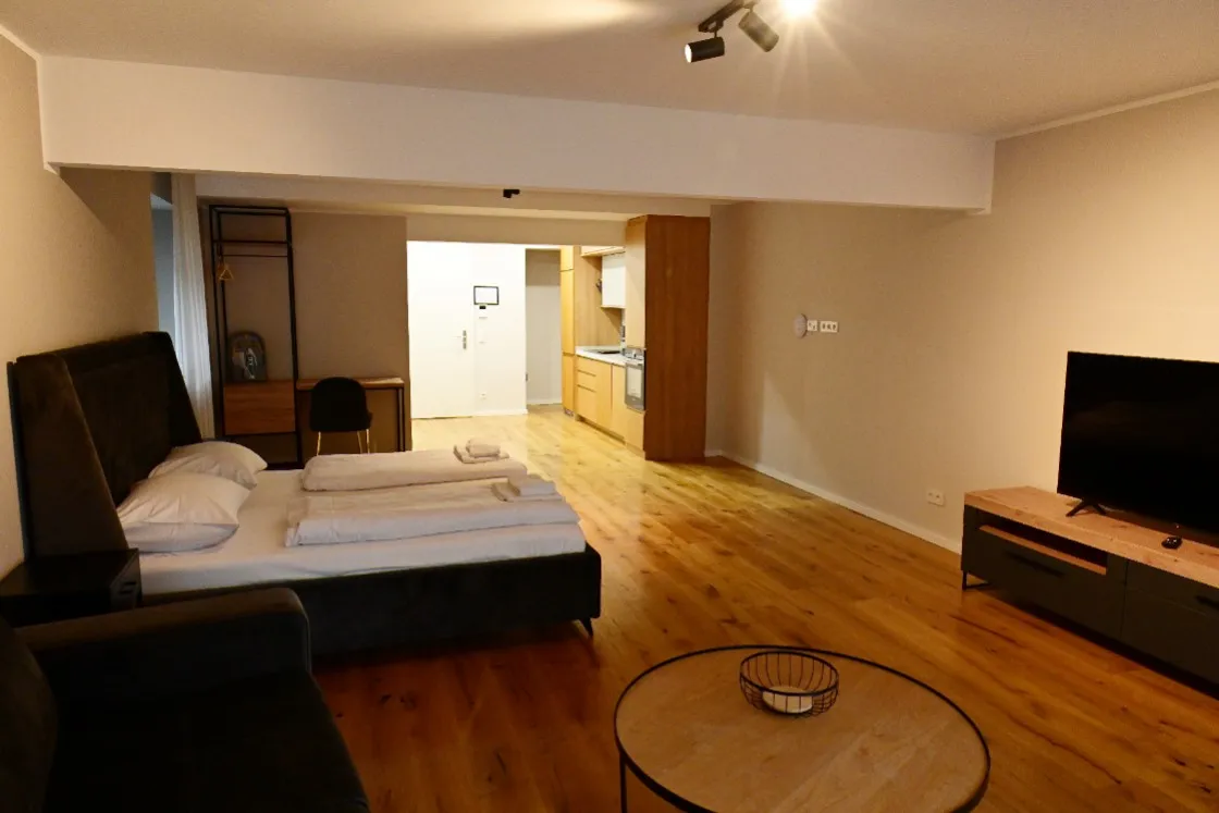 Bodentiefe Fenster sorgen für eine helle Wohnung, egal ob die Sonne scheint oder nicht. Ein großzügiges Wohnzimmer mit offener Einbauküche und einem großzügigen Wohn-Schlafzimmer mit Duschbad bilden in perfekter Aufteilung die ideale Grundlage für die gehobene Ausstattung dieser Wohnung! Den Kellerbereich und die weiteren Etagen erreichen Sie bequem per Lift.
