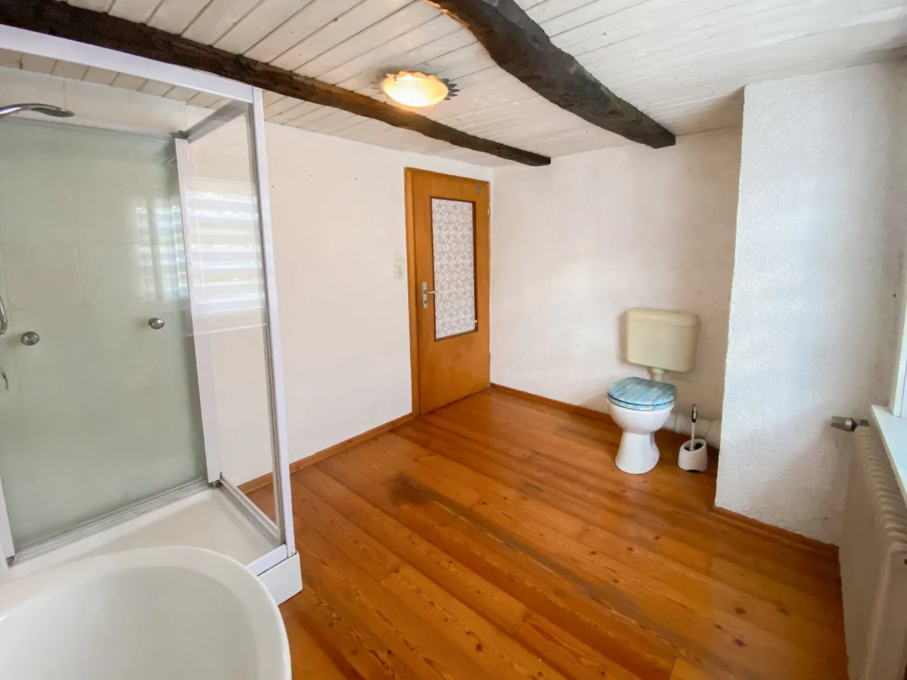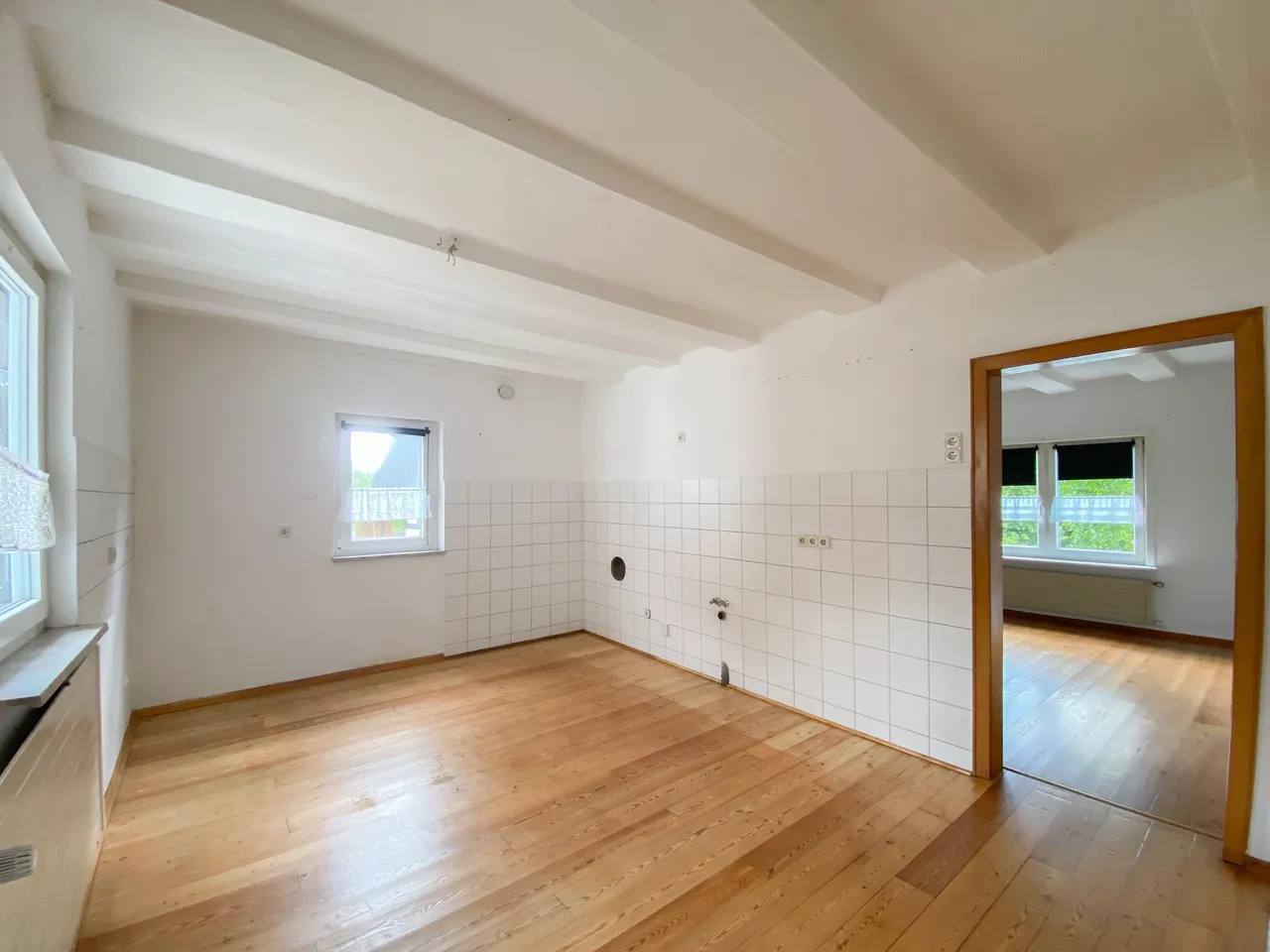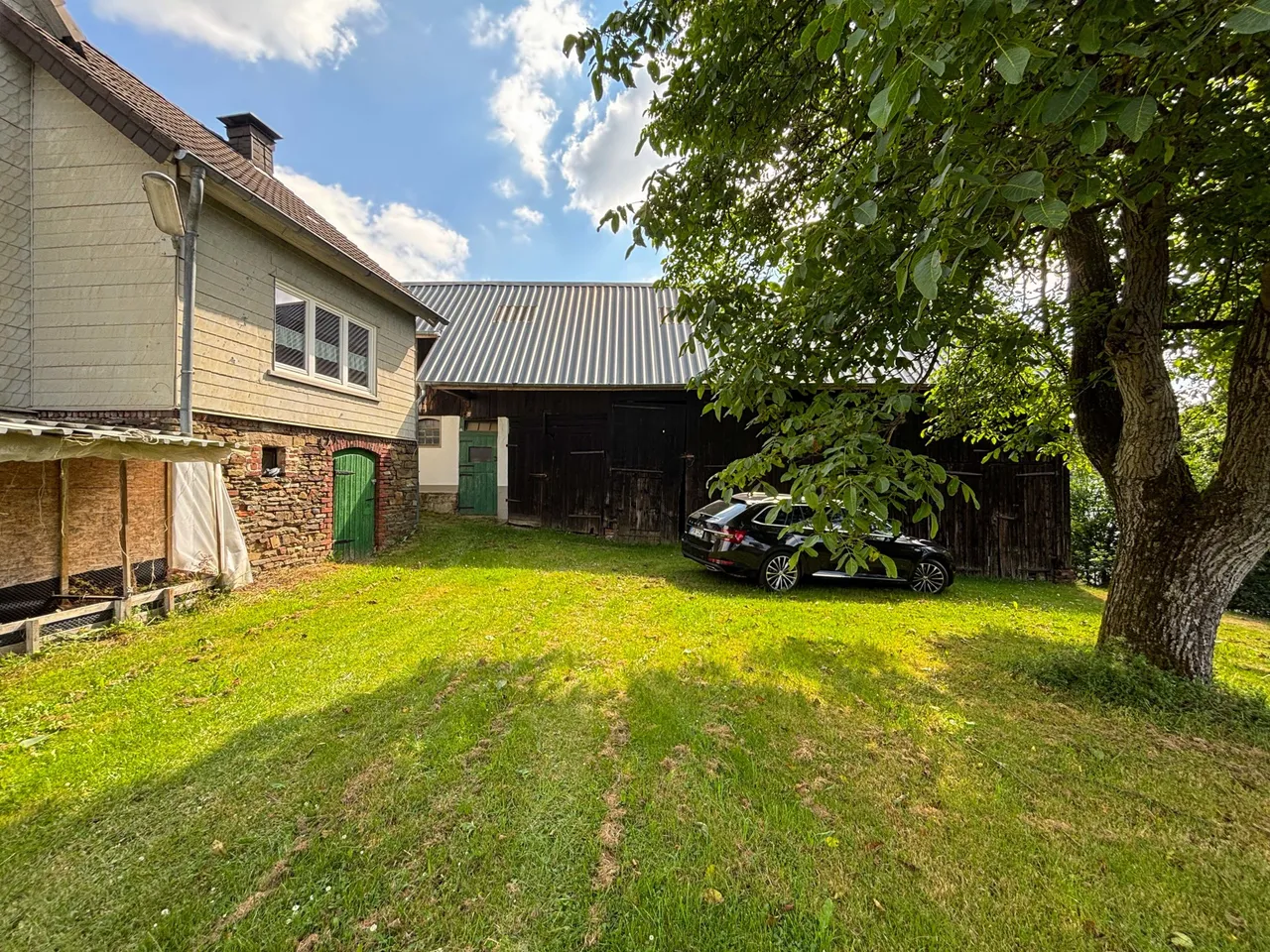 Dieses charmante Einfamilienhaus, ein ehemaliger Bauernhof aus dem 19. Jahrhundert, bietet eine seltene Gelegenheit für alle, die ein historisches Juwel liebevoll sanieren und mit neuem Leben füllen möchten. Auf einem großzügigen Grundstück von ca. 2.788 m², eingebettet in die idyllische Landschaft, können Sie sich Ihre Wohnträume erfüllen. Die Immobilie hat eine Wohnfläche von ca. 132 m², welche sich auf das Erd- und Obergeschoss verteilt. Im Erdgeschoss befinden sich drei Zimmer, zwei Bäder, eine großzügige Küche sowie ein direkter Zugang zum Keller und Stall. Das Obergeschoss umfasst drei weitere Zimmer und ein Badezimmer. Die Beheizung erfolgt wahlweise über einen Kamin oder die Gas-Zentralheizung. Im Außenbereich erwartet Sie ein weitläufiger Garten mit zahlreichen Obstbäumen, eine große Garage, zwei Scheunen, einen Stall, welche Tierhaltung ermöglicht, eine Jauchegrube sowie ein eigener Brunnen. Die ruhige Ortsrandlage des Hauses, umgeben von der unberührten Natur, verleiht diesem Anwesen eine einzigartige Atmosphäre der Entspannung und Erholung. Zusätzlich besteht die Möglichkeit, Wiesengrundstücke mit einer Gesamtfläche von ca. 5,3 ha zu erwerben – ideal für Naturliebhaber, Tierhaltung oder weitere Nutzungsmöglichkeiten.