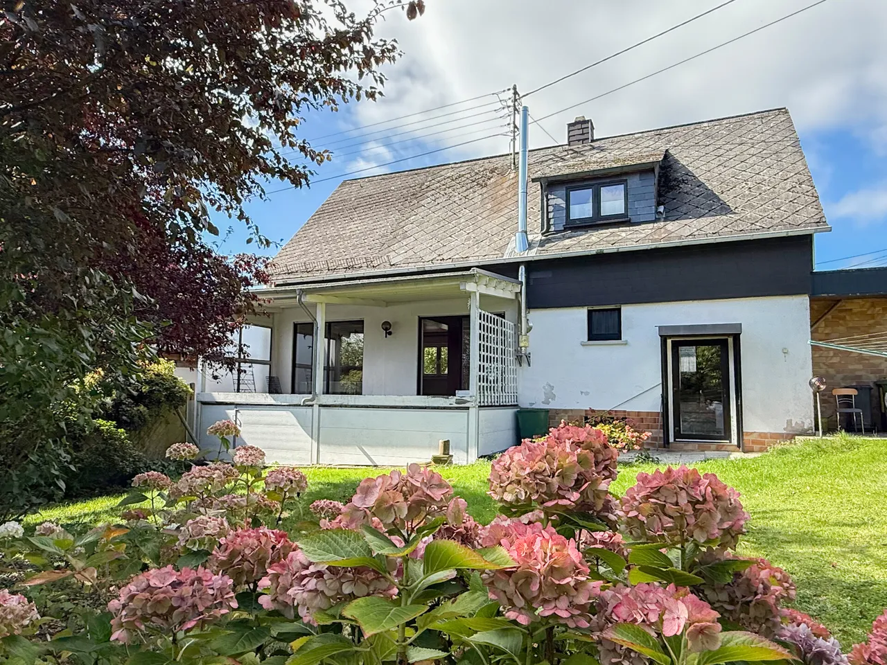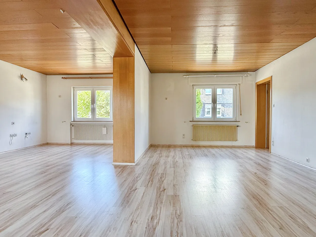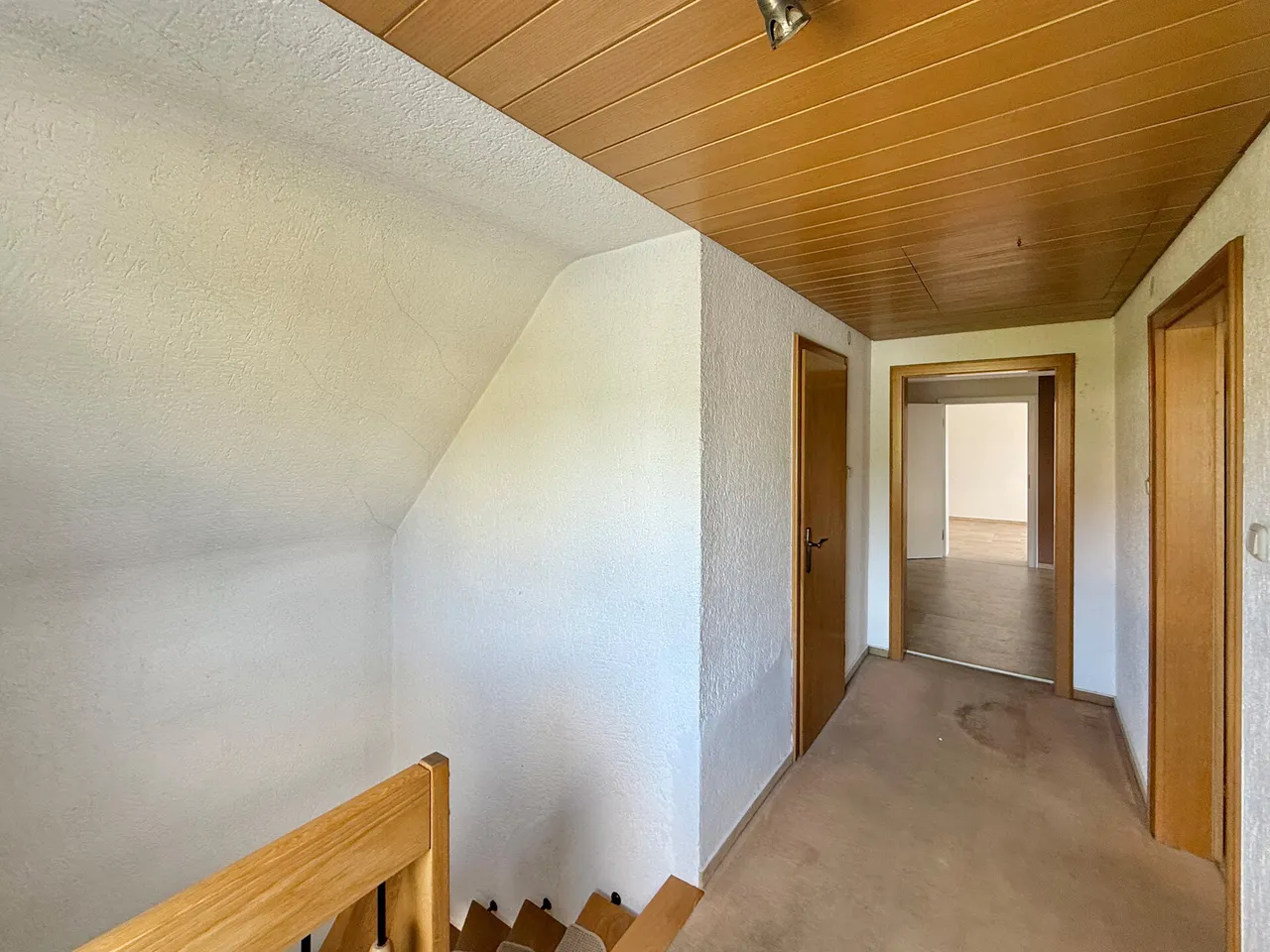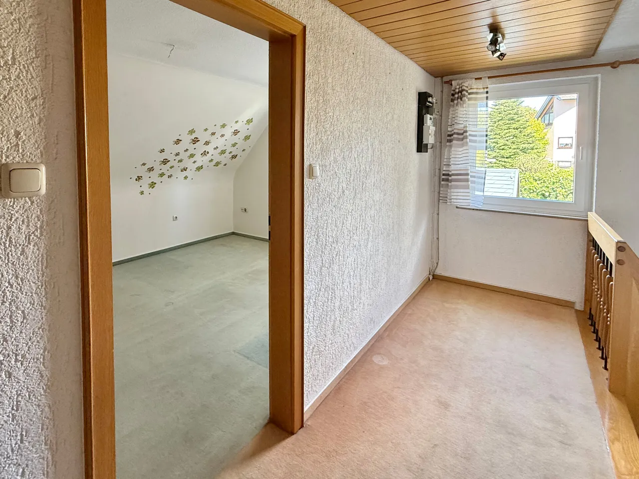 Dieses gepflegte Einfamilienhaus aus ca. 1975 befindet sich auf einem ca. 475 m² großen Grundstück in ruhiger Wohnlage – ideal für Familien, Paare oder alle, die viel Platz zum Leben und Gestalten suchen. Das Haus überzeugt durch: eine solide, massive Bauweise, eine durchdachte Raumaufteilung, seine vollständige Unterkellerung und jede Menge Wohnkomfort! Highlight des Hauses ist der großzügige Wohn- und Essbereich mit Kaminofen, der durch große Fensterflächen lichtdurchflutet und einladend wirkt. Von hier aus gelangen Sie direkt auf die überdachte Terrasse – ein perfekter Ort für entspannte Stunden mit Blick in den gepflegten Garten. Im Dachgeschoss befinden sich die Schlafzimmer. Zwei hintereinanderliegende Räume bieten flexible Nutzungsmöglichkeiten: ob als Elternschlafzimmer mit Ankleide, Kinderzimmer, Home-Office oder gemütlicher Rückzugsort – hier haben Sie Raum für Ihre Ideen! Beide Zimmer verfügen über einen Zugang zur Loggia mit herrlichem Fernblick. Ein zweites Bad im Obergeschoss sorgt für zusätzlichen Komfort. Im Kellergeschoss erwarten Sie: ein praktischer Abstellraum, eine Waschküche, der Heizungsraum und ein vielseitig nutzbarer Hobbyraum. Zusätzlich zur Garage stehen ein Carport mit 2 Stellplätzen, sowie ein weiterer Außenstellplatz zur Verfügung.