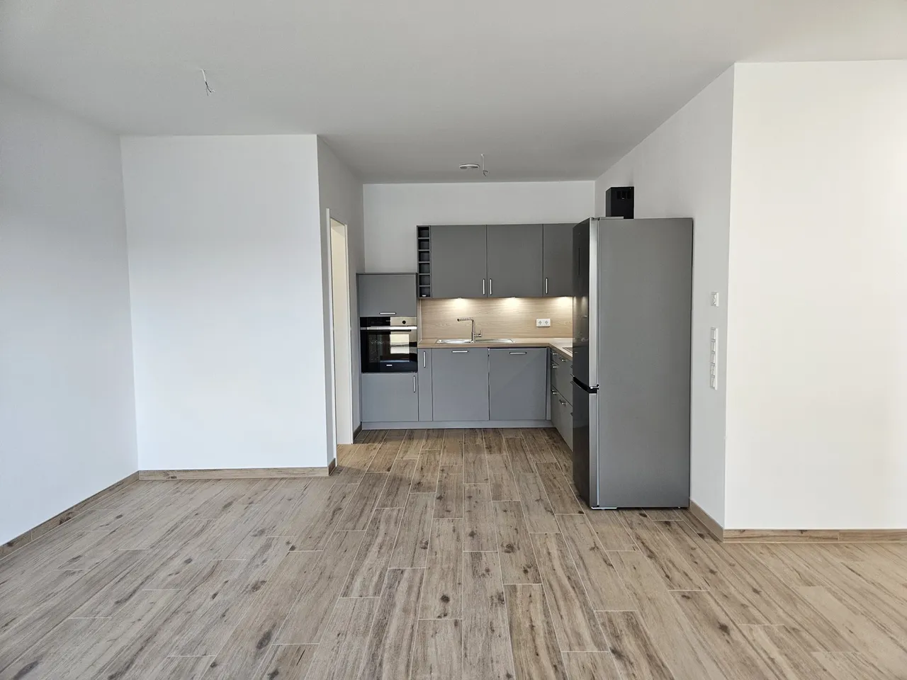 Die Fußbodenheizung garantiert auch an kühlen Tagen eine behagliche Wärme, während die offene Wohnküche ausreichend Raum für kreative Kochabende bietet. Eine moderne, neue Einbauküche ist im Angebot enthalten. Hochwertige Fliesen in Holzoptik unterstreichen die elegante Ausstrahlung der Wohnung und vervollständigen das stilvolle Gesamtbild.