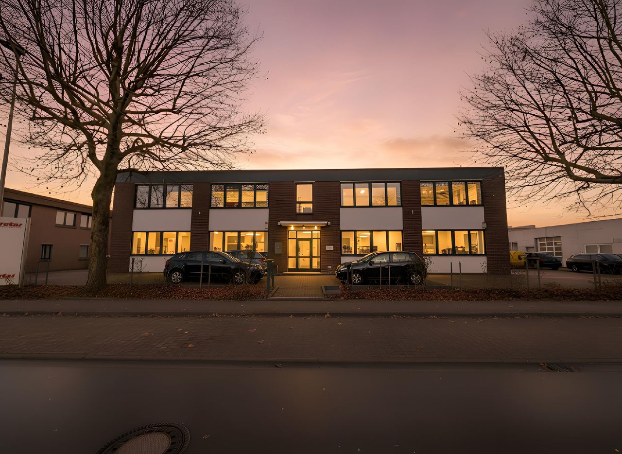 Die Gewerbeimmobilie befindet sich im etablierten Gewerbegebiet Willich-Münchheide an der Jacob-Kaiser-Straße. Das Umfeld ist geprägt von zahlreichen Industrie-, Logistik- und Dienstleistungsunternehmen, was einen funktionierenden gewerblichen Branchenmix gewährleistet. Die Autobahnen A44 und A52 sind in wenigen Minuten erreichbar und bieten eine sehr gute Anbindung an Düsseldorf, Mönchengladbach, Krefeld und die gesamte Rhein-Ruhr-Region. Ergänzende Infrastruktur wie Gastronomie, Hotels und Bushaltestellen befinden sich ebenfalls im näheren Umfeld, wodurch sowohl Kunden- als auch Mitarbeiterverkehr komfortabel möglich ist.