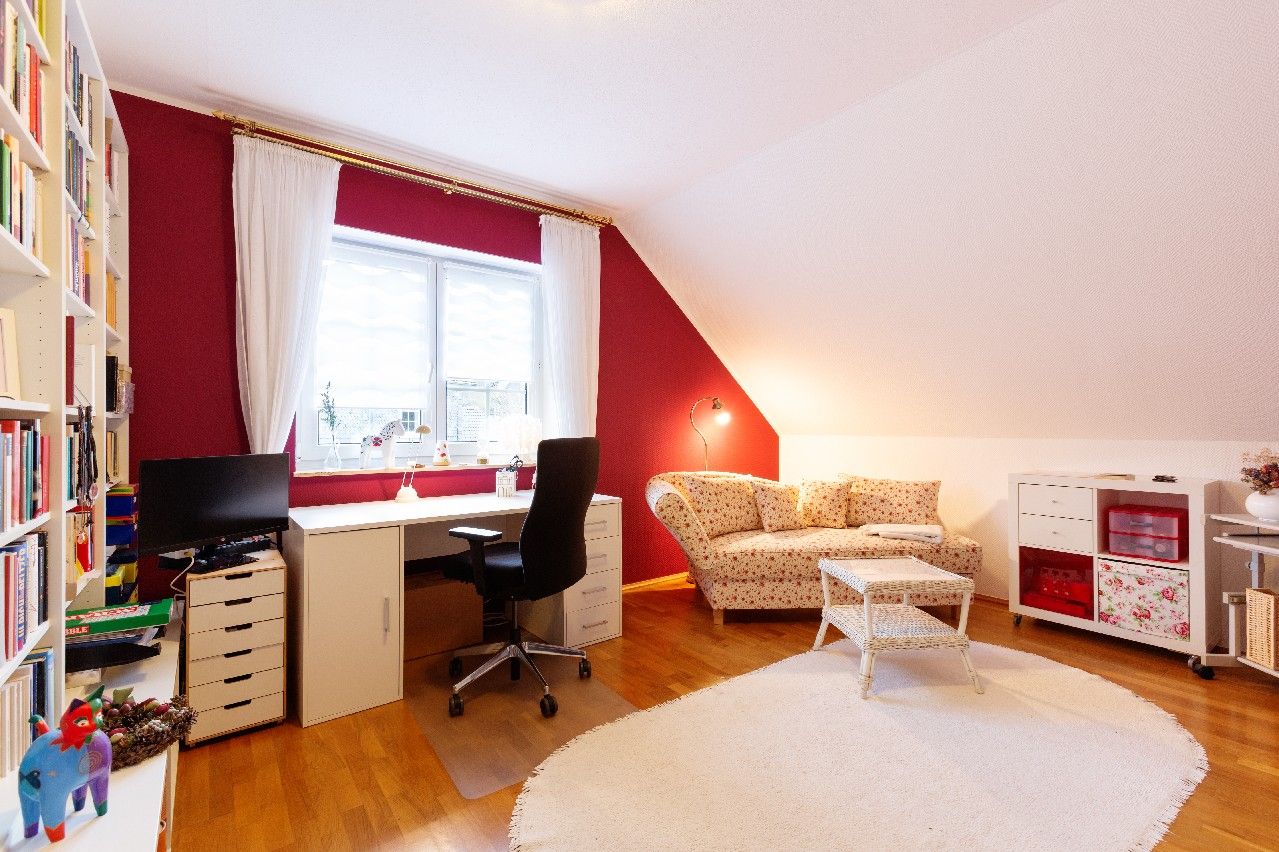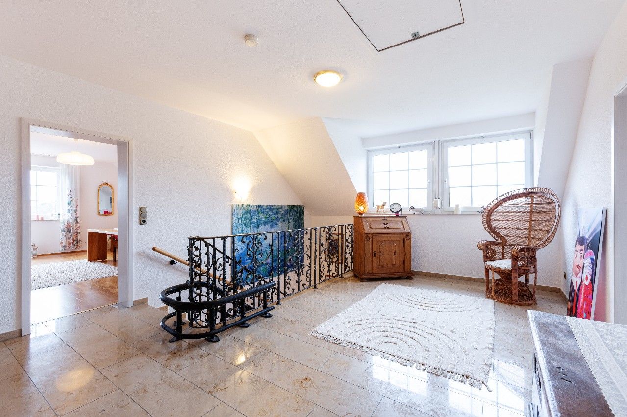 Mit einer Wohnfläche von ca. 232 m² sowie zusätzlichen ca. 118 m² Nutzfläche bietet das Haus außergewöhnlich viel Platz für Familien, Paare mit Homeoffice-Bedarf oder Menschen, die Wohnen und Arbeiten harmonisch verbinden möchten. Die durchdachte Raumaufteilung mit insgesamt fünf Zimmern, darunter drei komfortable Schlafzimmer (das Elternschlafzimmer mit en-Suite Bad und Balkon), schafft ideale Voraussetzungen für gemeinsames Familienleben ebenso wie für individuelle Rückzugsorte. Zwei stilvolle Bäder und ein Gäste-WC sorgen für Alltagstauglichkeit und Komfort. Zusätzlich steht Ihnen auf der zweiten Wohnebene noch ein Hauswirtschaftsraum zur Verfügung, der auch als Arbeits- oder Gästezimmer sowie als weiteres Kinderzimmer genutzt werden kann.