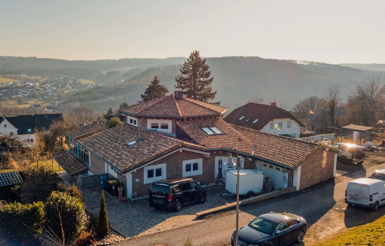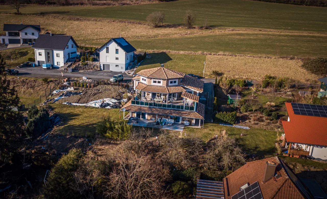 Dieses exklusive Einfamilienhaus, erbaut im Jahr 2019, vereint modernes Wohnen mit außergewöhnlichem Design und bietet einen atemberaubenden Blick auf die Landschaft. Die großzügige Wohnfläche von insgesamt ca. 333 m² ist hochwertig ausgestattet und besticht durch eine offene Raumgestaltung mit lichtdurchfluteten Bereichen.