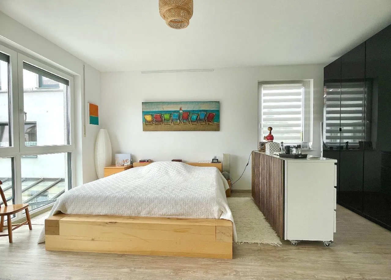 Grundrisse: Bei den in den Grundrissplänen (Prospektzeichnungen) eingezeichneten Möbeln und Ausstattungsgegenständen (z. B. Waschmaschine, Trockner, Sanitärausstattung, o. Ä.) handelt es sich um Einrichtungs- und Gestaltungsvorschläge, die nicht mit den vor Ort vorhandenen Gegebenheiten übereinstimmen müssen. Sie sind kein Bestandteil des Angebotes, und somit ohne konkreten Hinweis nicht im Kaufpreis enthalten. Sie dienen lediglich der Darstellung der Lage und ungefähren Größe der Räumlichkeiten. Für eventuell eingetragene Maße übernehmen wir keine Gewähr.
