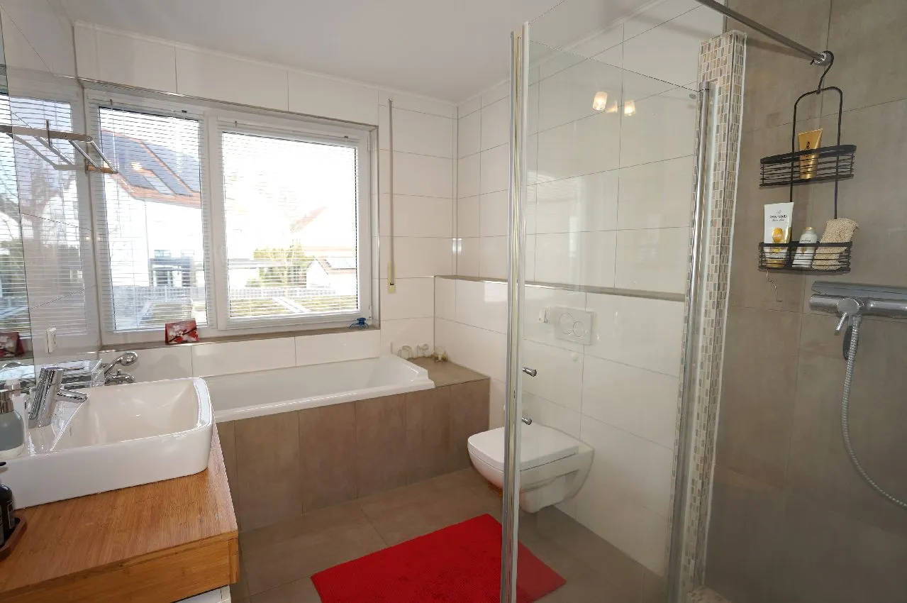 ** massive und konventionelle Bauweise mit wärmegedämmten WU-Vollkeller (sogenannte weiße Wanne in Wohnraumhöhe) – Außenwände in 17,5 cm Kalksandstein – Haustrennwände als zweischaliges 15 cm Mauerwerk mit dazwischen liegender mineralischer Dämmschicht ** Fassade mit mineralischem Wärme- dämmverbundsystem und Putzbelag ** Satteldach – Eindeckung mit Betondachsteinen – Sparrendämmung mit Dampfsperre ** Bicolour Kunststofffenster mit überwiegend elektrischen Rollläden, Wärmedämmglas als Zweischeibenisolierung (zusätzliche Pilzkopfverriegelungen) – auch die Kellerfenster sind als weiße isolierverglaste Kunststofffenster ausgeführt ** Wärmepumpenheizung von Vaillant als Fußbodenheizung (auch im Keller) mit integriertem Warmwasserspeicher und Einzelraumthermostaten ** Photovoltaikanlage 3,20 kWp und 2,75 kWh Stromspeicher Alpha ESS Storion Smile-B ** Böden bis auf die Sanitär- und Küchenbereiche als Vinylböden ** moderne und offene Einbauküche ** geschlossene Holztreppe vom EG ins OG – übrige Etagen in Stahlkonstruktion mit Holzstufen ** Gäste-WC im Erdgeschoss – Tageslichtbad mit Wanne und Dusche im Obergeschoss – Tageslichtbad mit Dusche im Dachgeschoss ** Carport plus zusätzlicher offener Stellplatz ** Außenwasseranschluss ** Terrasse mit Fliesenboden und Überdachung mit abschließenden Schiebetüranlagen – massive Mauer als Abtrennung zum Nachbarn – weitere Sonnenterrasse (ca. 27 m²) in Holz mit Hochbeeten ** automatische Bewässerungsanlage mit Regensensor ** Gartenhaus mit Regentonnensystem für 1.200 l ** TV-Empfang über Satellitenschüssel ** Heidelberg Wallbox ** …!