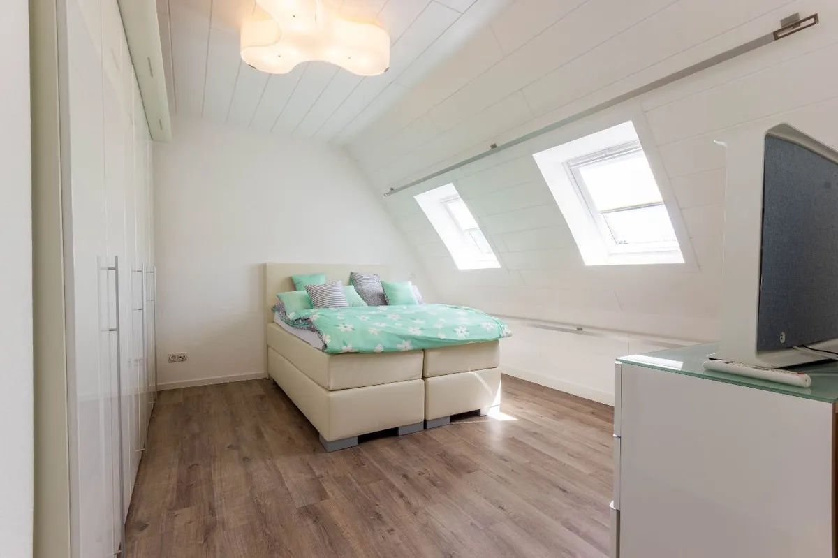 Das Obergeschoss, welches Sie über beide Dielen erreichen, verfügt über drei Schlafzimmer, ein geräumiges Durchgangszimmer, das als Kinder- oder Arbeitszimmer genutzt werden kann, einem Elternbadezimmer mit Badewanne, einem weiteren modernen Badezimmer mit Dusche samt Fußbodenheizung und einem Gäste-WC.