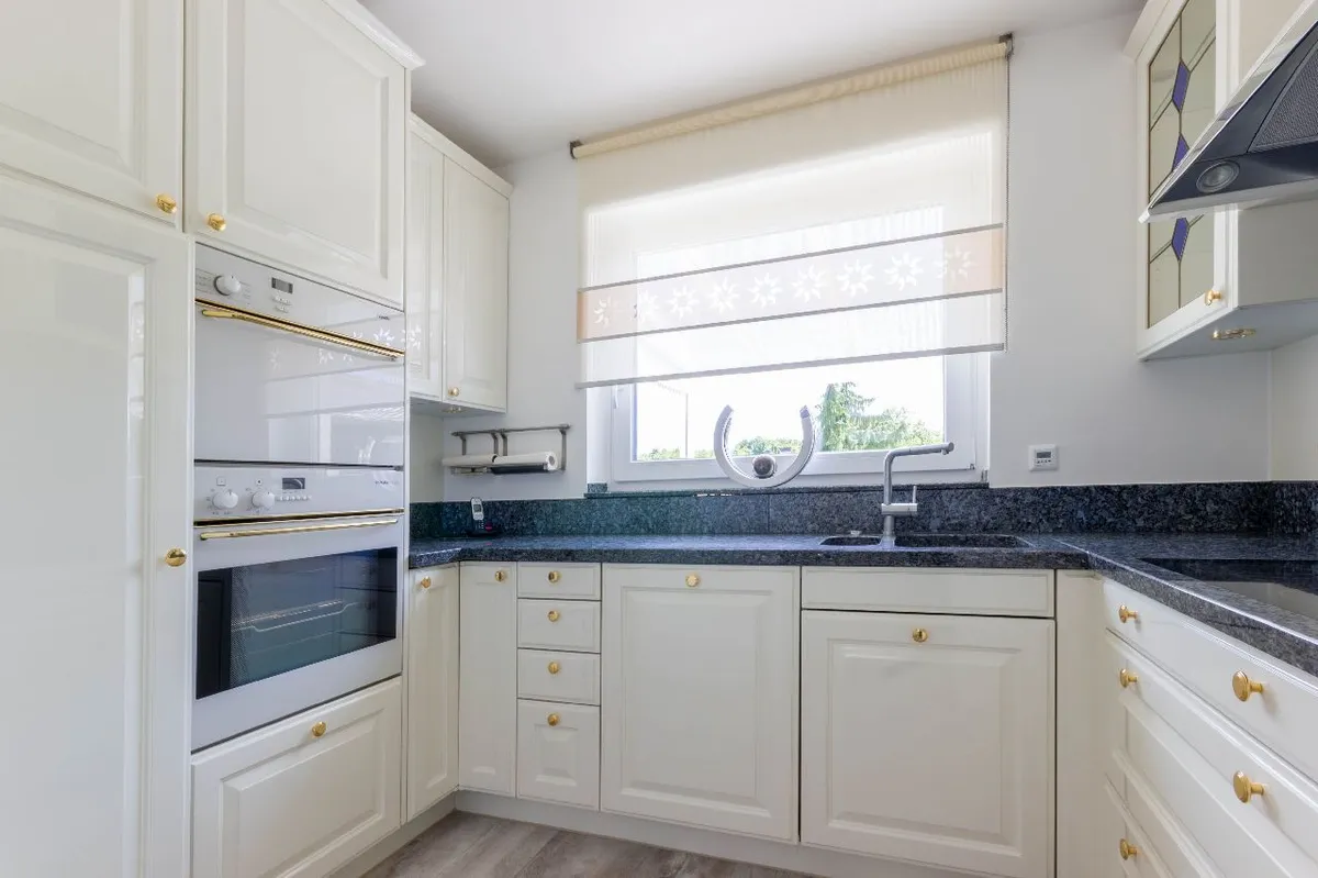 Elektrisch betriebene Rollläden mit Zeitschaltuhr, Haustüranlagen aus Aluminium mit 3 fach-Verriegelung, große, moderne Küche mit Miele- und Liebherrgeräten, Kellergeschosse mit Heiz- und Hauswirtschaftsräumen, Sauna, Fliesen, Linoleumin-Holzoptik, Strukturputz, gespachtelt, modernisierte Bäder/WCs, teilweise Heizschleifen unterder Dusche, Regendusche, Glasabtrennungen, Sicherheitssystem, Einbauschränke, komplette Neugestaltung des Terrassenbelags inkl. Unterbau mit Drainagebeton und neuer Einfassung mit Naturstein, Terrassendachkonstruktion des Herstellers Solarlux, 2 senkrecht Markisen (Sonnen- und Regensensor).
