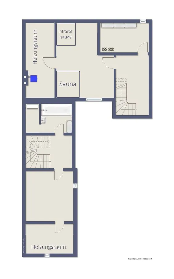 Beide Häuser sind voll unterkellert, jedoch sind die Keller nicht miteinander verbunden. Neben Wasch- und Heizungsräumen gibt es diverse Abstellmöglichkeiten und einen Saunaraum, der mit einer Finnischen Sauna und einer Infrarotsauna ausgestattet ist.