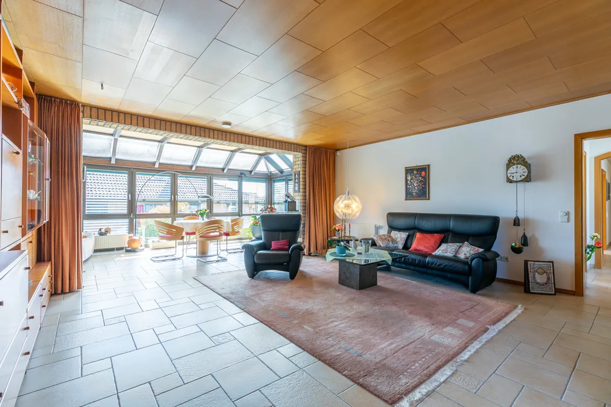 Lichtdurchflutete Architektur empfängt Sie im Erdgeschoss schon beim Betreten des Hauses. Der großzügige Wohn-/Essbereich mit angrenzender Küche wird Sie sofort begeistern. Ein herrlicher Wintergarten beschert Ihnen einen wunderbaren Ausblick in die Natur zu jeder Jahreszeit. Auf dem großen Südbalkon genießen Sie gemütliche Stunden, oder Sie nutzen direkt die praktische Treppe in den herrlichen Garten. Zurück im Erdgeschoss bieten Ihnen zwei Schlafzimmer mit Klimaanlage angenehme Rückzugsmöglichkeiten. Ein großzügiges Vollbad und ein separates WC schaffen auf dieser Etage Platz für alle bei der morgendlichen Routine. Im Untergeschoss befinden sich nochmals Ausweichmöglichkeiten in Form von Dusche und separatem WC. Hier gibt es außerdem zwei zu Wohnzwecken ausgebaute Räume, die perfekt für Gäste, Büro oder Hobby zu nutzen sind. Ein besonderes Highlight dieser Einheit stellt der integrierte Saunabereich dar. Der direkte Zugang in den Garten garantiert Entspannung pur! Hier hat ein Gartenarchitekt ein kleines Paradies geschaffen, das mit seinen verschlungenen Wegen und Sitzplätzen zum Wandeln, Verweilen und Staunen einlädt.