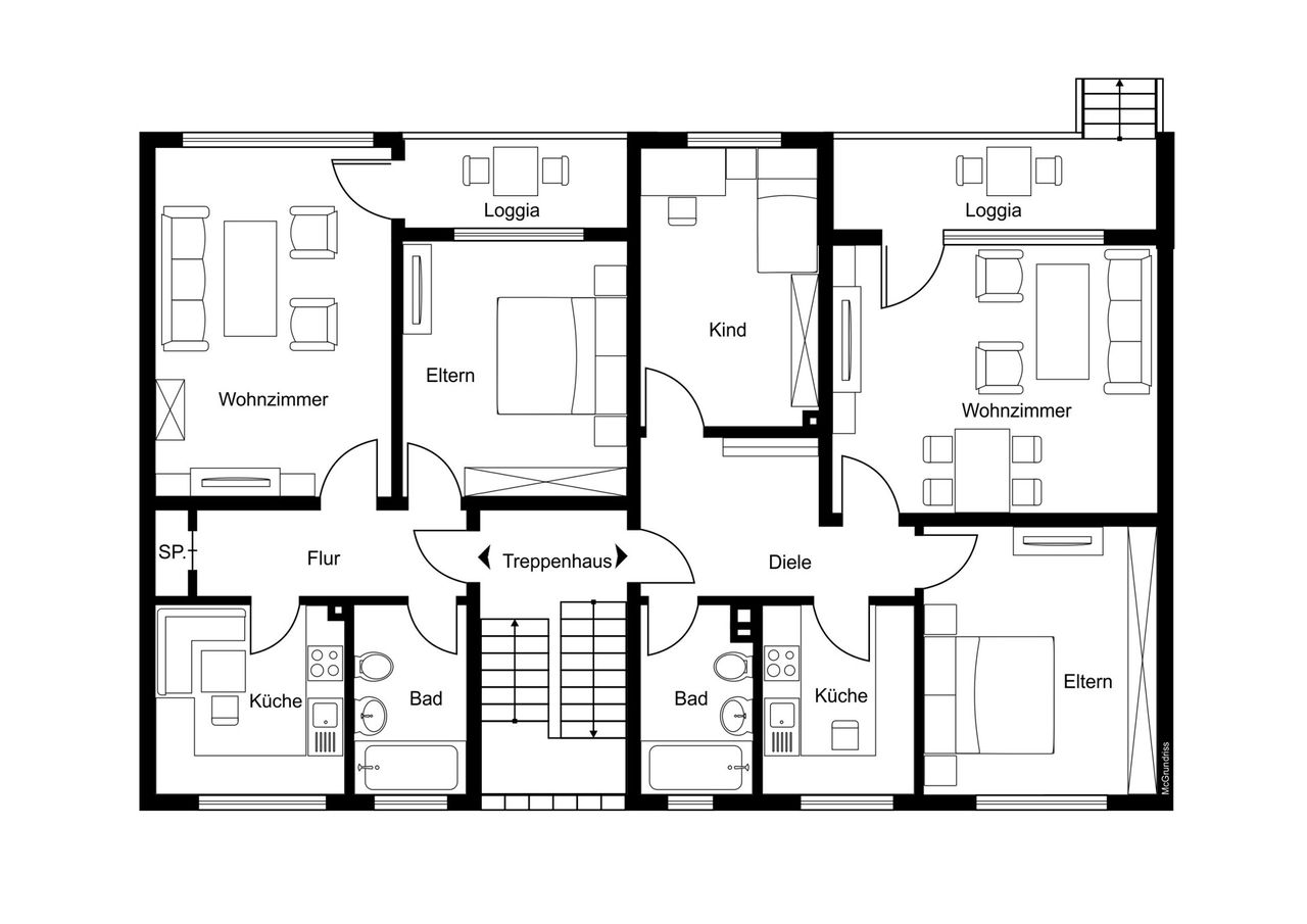 – sehr gute Raumaufteilung der einzelnen Wohnungen