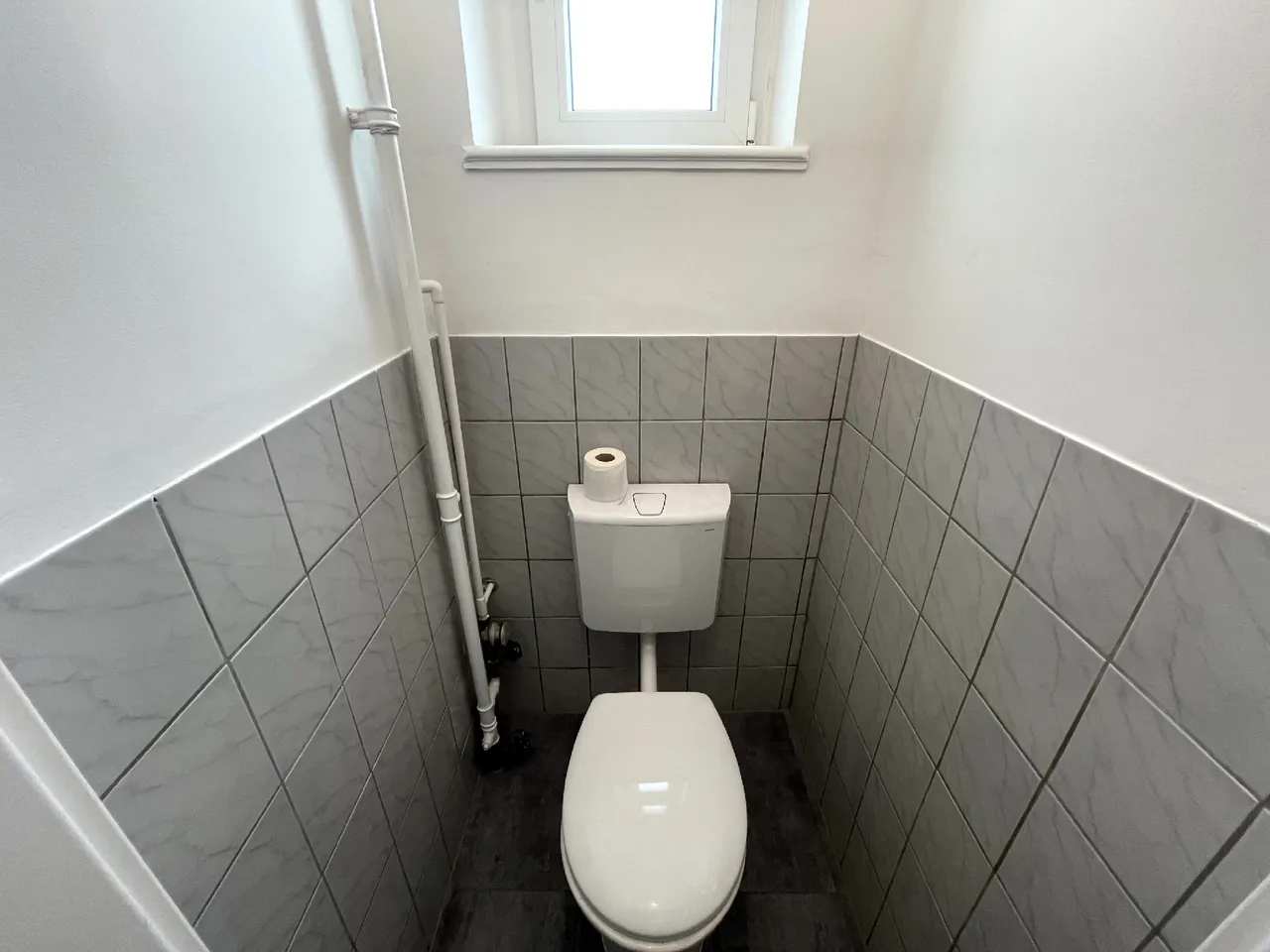 Die Fläche beeindruckt durch ihren offenen Grundriss und das großzügige Raumgefühl, das durch zahlreiche Fenster und die hohen Decken betont wird. Die natürlichen Lichtverhältnisse schaffen eine helle und freundliche Arbeitsatmosphäre, die sich ideal für produktive Arbeitsabläufe eignet. Der frisch verlegte Boden in Holzoptik verleiht dem Raum eine warme, einladende Note und passt perfekt zu den weißen Wänden und der modernen Beleuchtung. Zusätzlich bieten moderne WC-Anlagen sowie eine kleine Teeküche den Mitarbeitern den notwendigen Komfort im Arbeitsalltag.