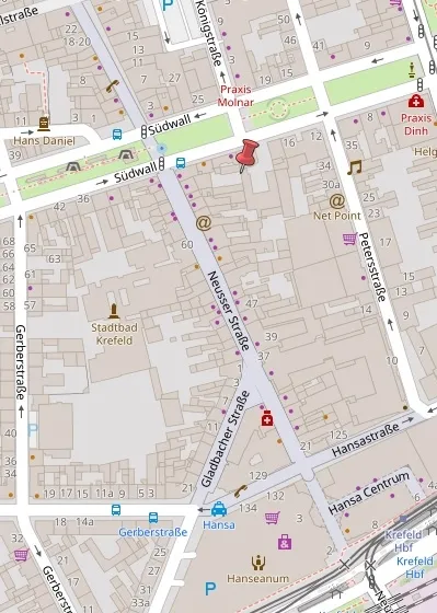 Das Büro am Südwall 22 in Krefeld liegt zentral in der Innenstadt und bietet eine attraktive und gut angebundene Lage. Der Innenhof ist mit einem Zaun von der Straße abgegrenzt und ein automatisches Tor regelt die Zufahrt zum Gebäude. Ein PKW-Stellplatz im Innenhof kann zusätzlich angemietet werden. Die Nähe zum Hauptbahnhof, der in etwa zehn Minuten zu Fuß erreichbar ist, sowie die schnelle Anbindung an die Autobahn A57 ermöglichen eine unkomplizierte Erreichbarkeit für Kunden und Mitarbeiter aus der Region und darüber hinaus.