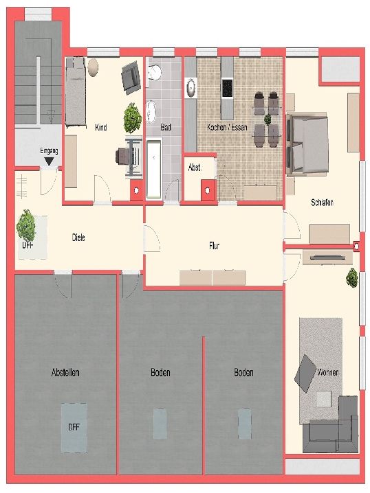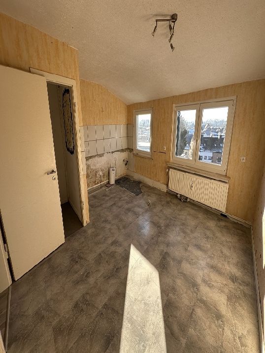 Interessante 3 Zimmer-Wohnung mit neuem Wannenbad, Wohnküche sowie 2 ebenfalls im DG liegende, große und unbeheizte Abstellbereiche von insg. 64 m² (somit gut 150 m² Gesamtfläche). Hier können Sie sich frei entfalten … ! Die Wohnung wird unrenoviert übergeben, bei Auszug müssen Sie aber auch nicht renovieren.