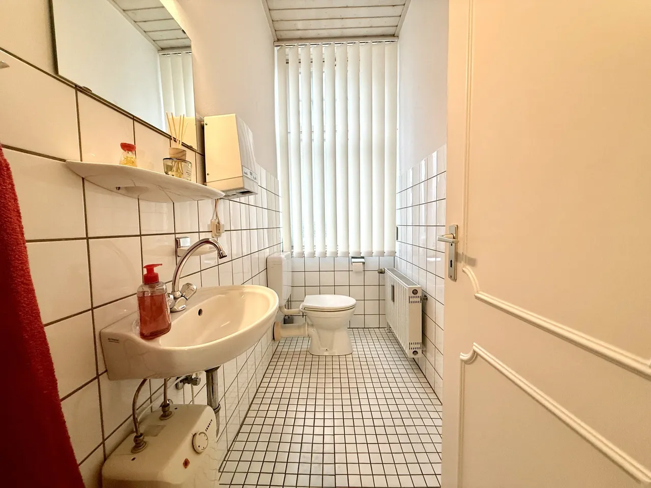 Für den täglichen Komfort sorgen getrennte Damen- und Herrentoiletten sowie eine Teeküche, die ideal für Pausen und die Versorgung der Mitarbeitenden geeignet ist.