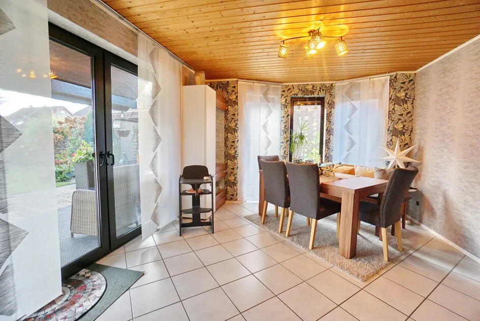 Bereits bei Betreten des Hauses wird spürbar, in welchem sehr gepflegten Zustand sich die Immobilie befindet. Im Flur sind ein Gäste-WC und praktischer Garderobenbereich vorhanden. Zudem ist hier Platz für Schränke und Abstellmöglichkeiten. Das Erdgeschoss besticht durch ein großzügiges Wohn-/Esszimmer, das eine wohnliche Atmosphäre bietet. Die angrenzende Küche mit Einbauküche lädt zum Kochen und geselligem Beisammensein ein. Ein praktischer Hauswirtschaftsraum rundet das Raumprogramm ab. Diese Räumlichkeiten verteilen sich auf ca. 65 m². Zahlreiche Fensterelemente im Wohnzimmer bieten einen schönen Ausblick in den liebevoll angelegten Garten.
