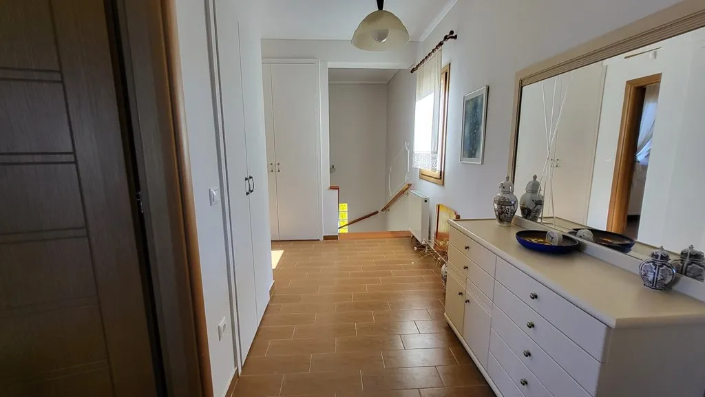 Die Villa verfügt über insgesamt 3 Etagen und befindet sich in einem sehr gepflegten Zustand. Sie bietet viel Platz für Ihre Familie und Ihre Gäste. Im ebenerdig gelegenen Untergeschoss liegt eine großzügige Wohnküche, ein Schlafzimmer, ein Duschbad und ein Abstellraum. Das Erdgeschoss besteht aus einer modern eingerichteten Wohnküche, sowie einem Schlafzimmer mit Duschbad. Die erste Etage besteht aus Schlafzimmern, einem Bad und einem Abstellraum. Erd- und Obergeschoss bieten einen schönen Blick auf das Meer und die umliegende herrliche Landschaft.