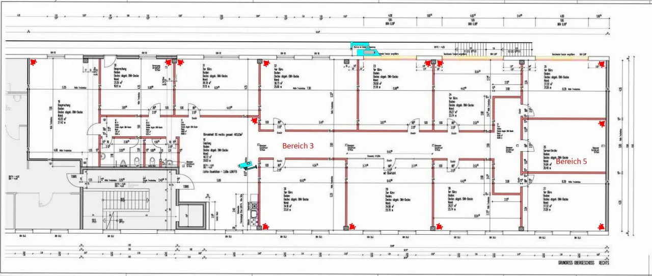 Der beigefügte Grundriss stellt die aktuelle Aufteilung dar. Bei konkretem Mietinteresse kann die Raumaufteilung ggf. angepasst werden.
