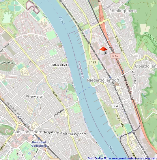 Unmittelbar an der Ortsgrenze zu Bonn-Oberkassel, direkte Autobahnanbindung zur B42. Öffentliche Verkehrsmittel sind fußläufig erreichbar.