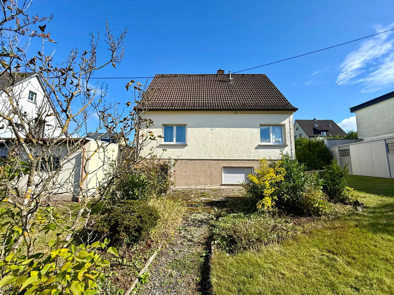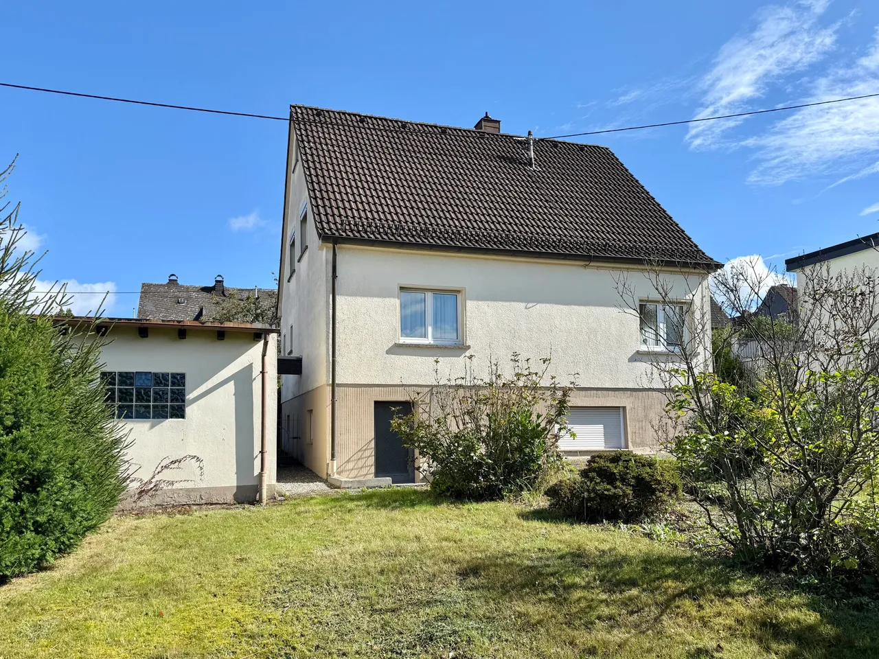 In zentrumsnaher Lage von Hachenburg präsentiert sich dieses charmante Einfamilienhaus mit einer Wohnfläche von rund 107 m². Das um ca. 1957 errichtete Objekt überzeugt durch seinen gepflegten Zustand und bietet mit insgesamt 6 Räumlichkeiten genügend Platz für Familien oder Paare. Zwei Bäder sorgen für zusätzlichen Komfort. Das Wohnhaus ist voll unterkellert und eröffnet weitere Optionen: Neben einer Waschküche und einem zweiten Duschbad finden Sie im Kellergeschoss einen weiteren Raum vor, der sich ideal als Hobbyraum eignet. Auch eine Nutzung als Gästebereich oder eigener Bereich für einen heranwachsenden Teenager ist denkbar. Eine Terrasse und der Garten mit Obstbaumbestand laden zum Entspannen ein, während die Nähe zum Stadtkern kurze Wege zu Einkaufsmöglichkeiten, Ärzten und kulturellen Angeboten garantiert – ein Haus, das Wohnkomofort und Lagevorteile harmonisch miteinander verbindet.