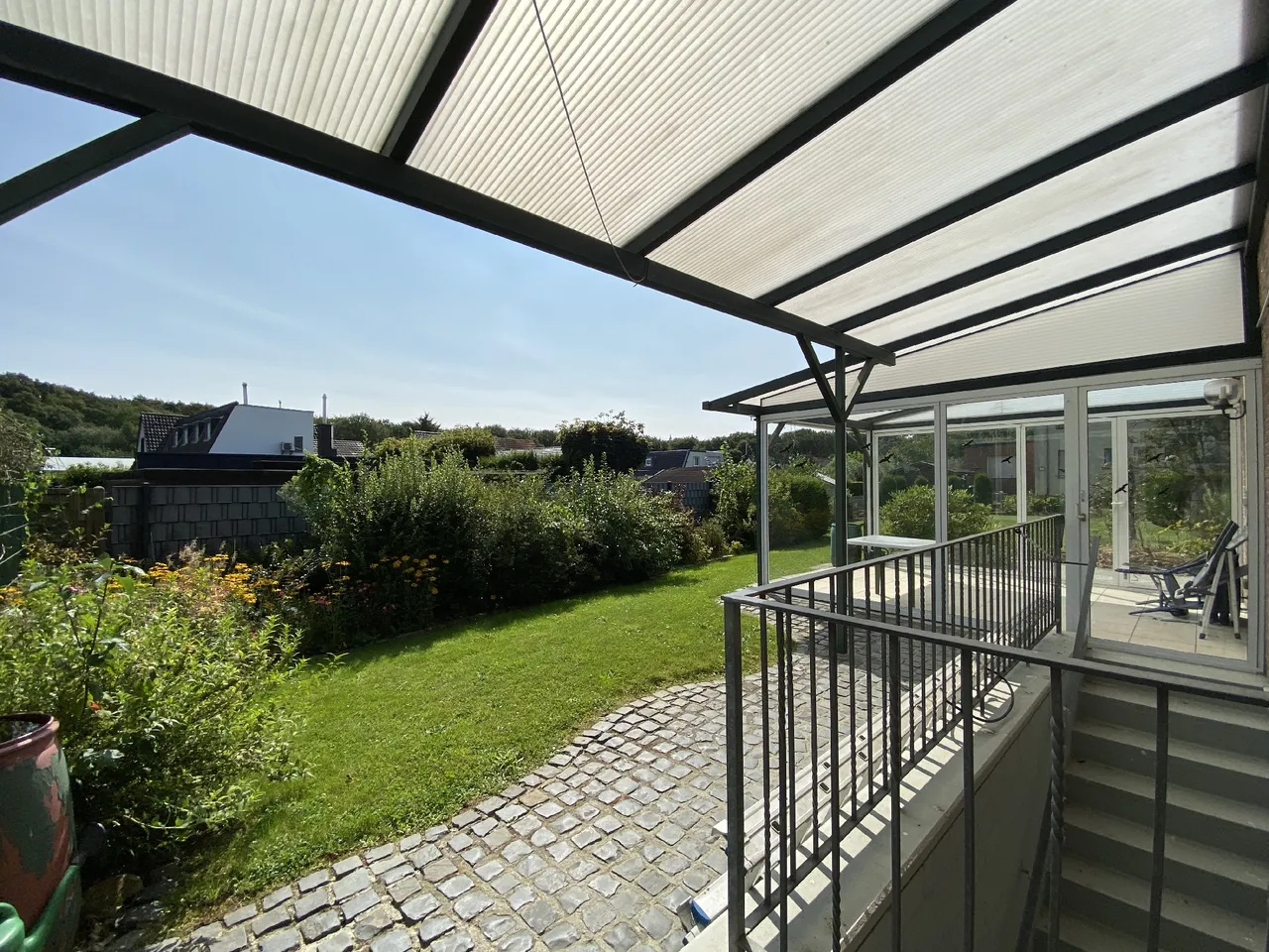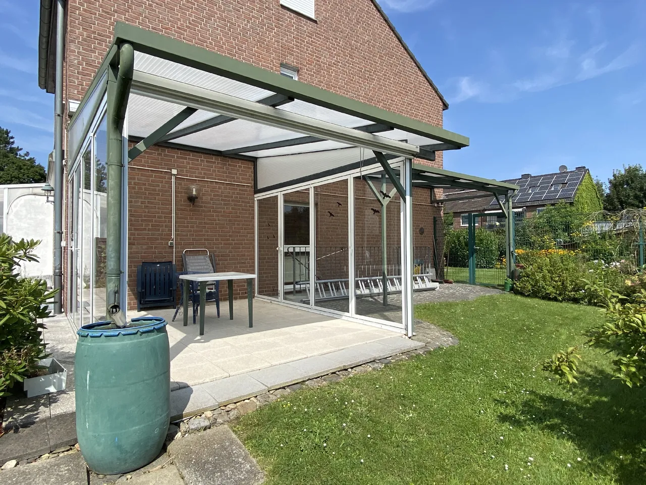 Das große Grundstück bietet neben einem weitläufigen Garten, welcher zum ausgiebigen Gärtnern, Spielen und Entspannen einlädt, die Gestaltung eines üppigen Vorgartens mit zusätzlichem Platz für Fahrräder und Mülltonnen. Ein nahezu uneinsehbarer Wintergarten, welcher seitlich angebaut wurde, rundet den tollen Außenbereich ab.