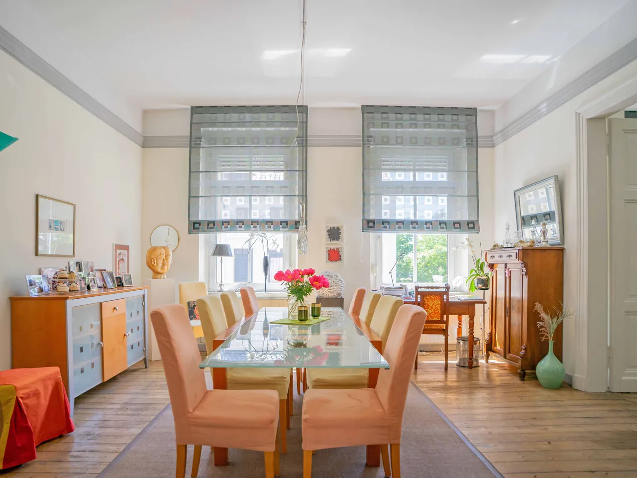 Die Wohnungen bieten großzügige Räume mit hohen Decken, altbautypische Details und somit eine besondere, stilvolle Wohnatmosphäre.