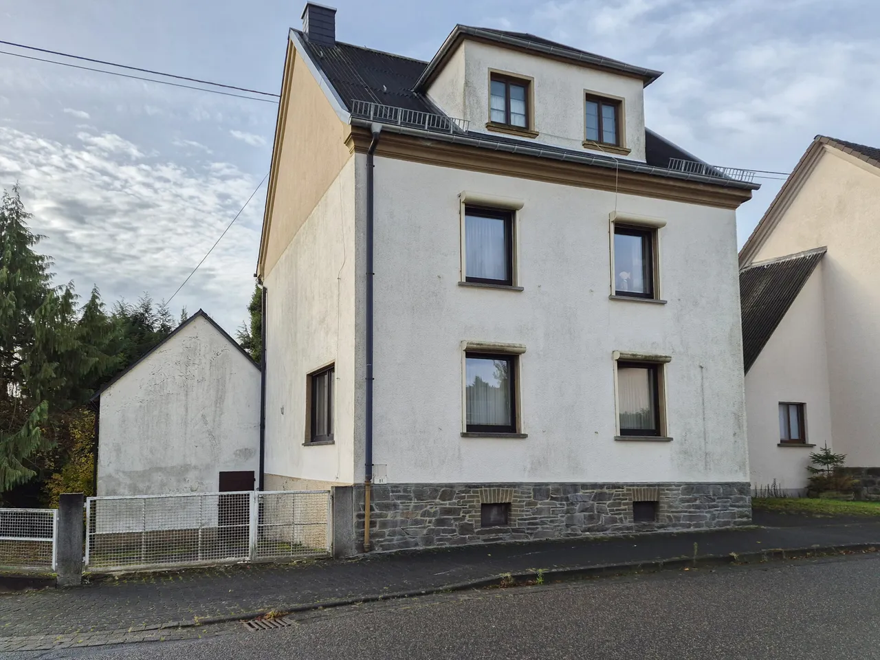 Dieses geräumige Wohnhaus in Straßenhaus wartet darauf, von einer handwerklich geschickten Familie mit neuen Gestaltungsideen belebt zu werden. Das um 1932 in massiver Bauweise errichtete Gebäude verfügt über eine gemütliche Wohnfläche von rund 112 m² und eine Raumaufteilung, die sich ideal für individuelle Ideen eignet. Fünf Zimmer, eine Küche sowie ein Badezimmer – darunter drei gut geschnittene Schlafzimmer – bieten die perfekte Basis für ein gemütliches Zuhause. Im Inneren erwartet Sie eine solide Grundstruktur, die renoviert und modernisiert werden möchte. In den vergangenen zehn Jahren wurden bereits einige Fenster erneuert, teils mit elektrischen Rollläden. Beheizt wird das Haus über eine Gaszentralheizung, die seit rund 25 Jahren zuverlässig ihren Dienst leistet. Das etwa 645 m² große, eingezäunte Grundstück ist pflegeleicht angelegt und bietet viel Platz für Familie. Ein 2 ½-geschossiger Schuppen eröffnet zusätzliche Möglichkeiten: ob Werkstatt oder Lager-/Abstellfläche. Ergänzt wird das Angebot durch eine Garage sowie einen Pkw-Stellplatz direkt am Haus. Links neben dem Haus befindet sich noch eine asphaltierter Hof, dort können noch weitere Fahrzeuge abgestellt werden.