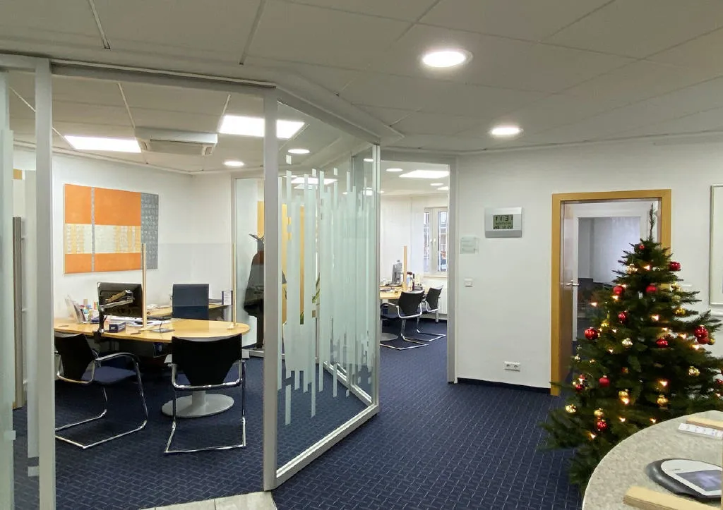 Ein Umbau der Fläche ist grundsätzlich leicht realisierbar, da Leichtbauwände sowie Glaswände aktuell als Abtrennung der einzelnen Räume eingesetzt sind.