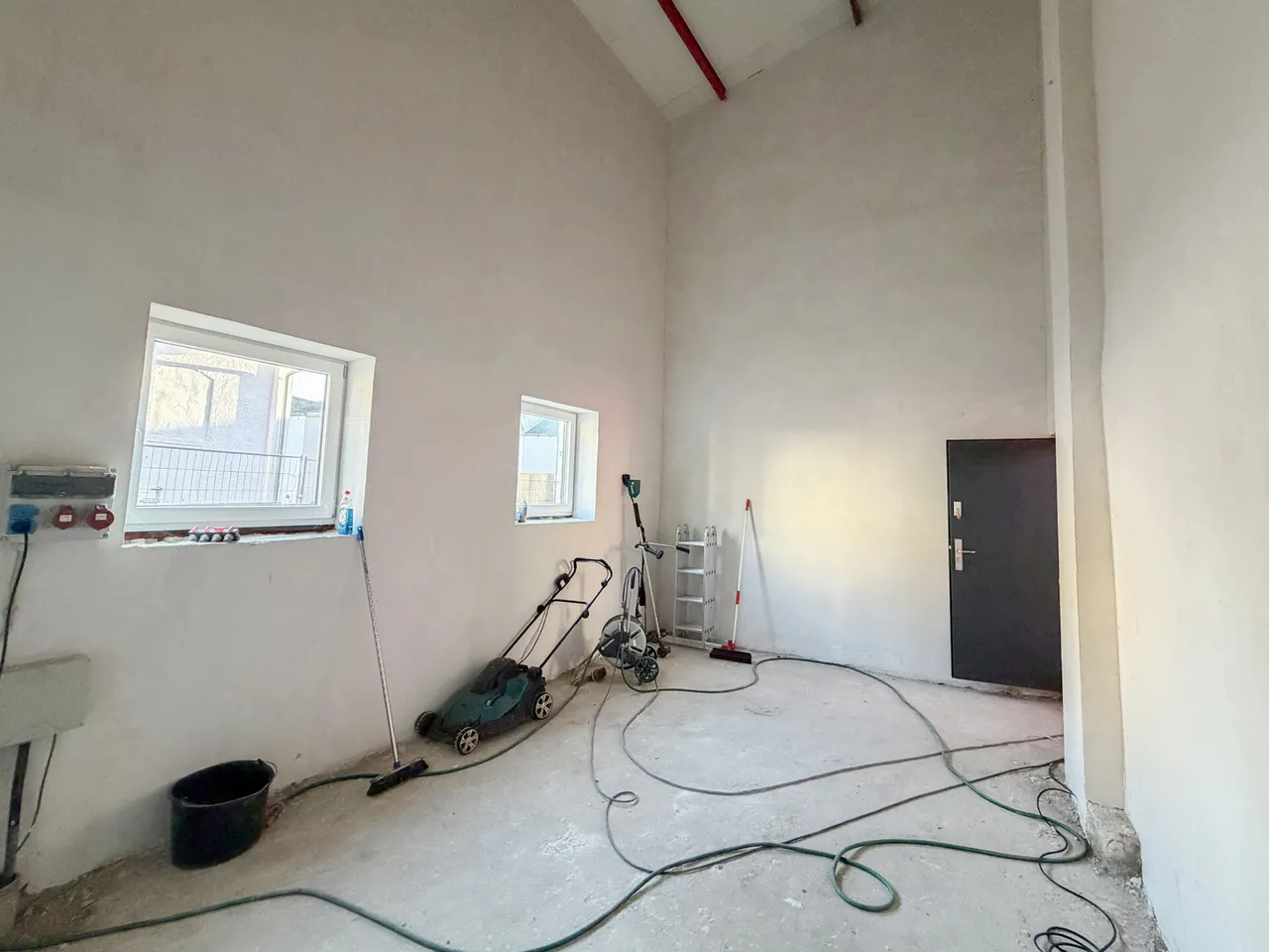Die erste Halle bietet mit einer Nutzfläche von ca. 472 m² ideale Voraussetzungen für Lager-, Produktions- oder Werkstattflächen. Mit einer Höhe von circa 10m ergibt sich die Möglichkeit, zusätzlich Etagen einzubauen von ca. 60 m², die frei nach Wahl genutzt werden können. Die Halle verfügt über eine großzügige Hauptfläche sowie drei kleinere Nebenräume, die zusätzlichen Stauraum, Büro- oder Werkstattmöglichkeiten bieten und früher als Personalraum und WC verwendet wurden.