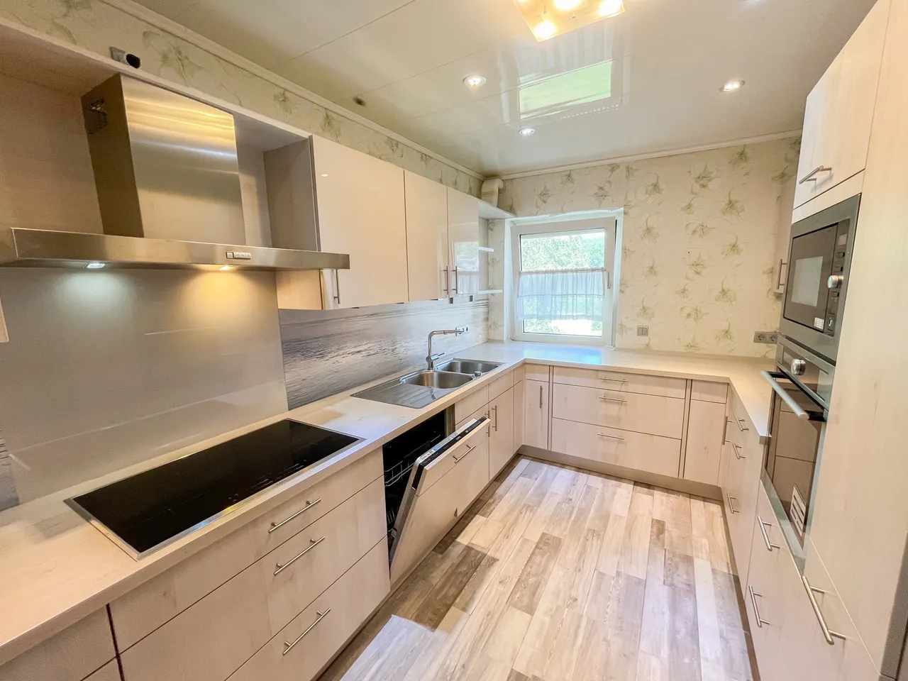 Ein Kamin im Wohnbereich sorgt für eine gemütliche Atmosphäre an kühleren Tagen. Die stilvolle Einbauküche aus dem Jahr 2016 überzeugt mit ihrer sehr guten Ausstattung. Freuen Sie sich zudem auf entspannte Stunden im Freien, auf Ihrer Terrasse oder Ihrem Balkon mit Blick ins Tal.