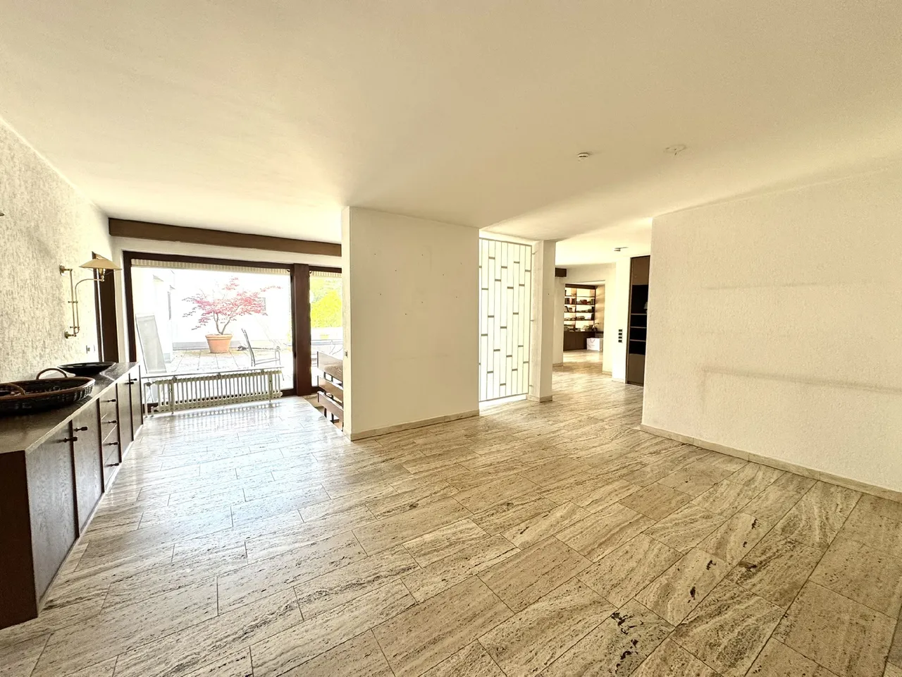 – Travertinböden im Eingangsbereich und im Wohn-/Essbereich