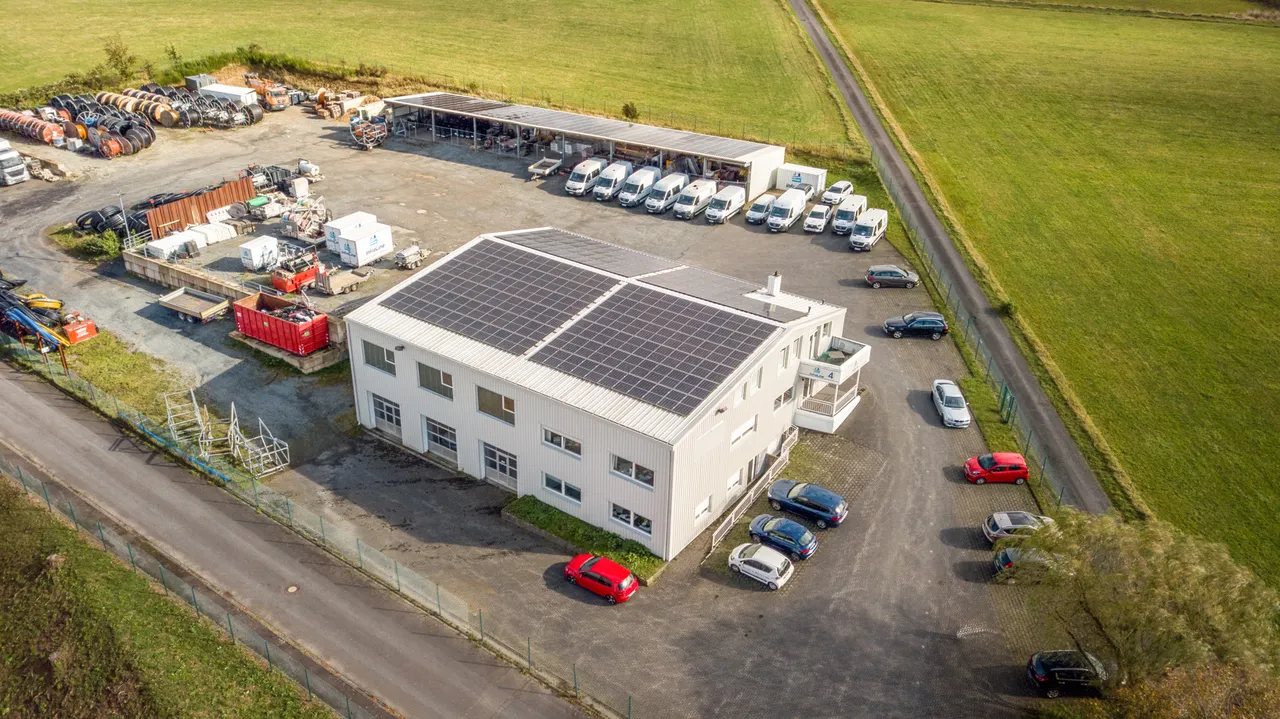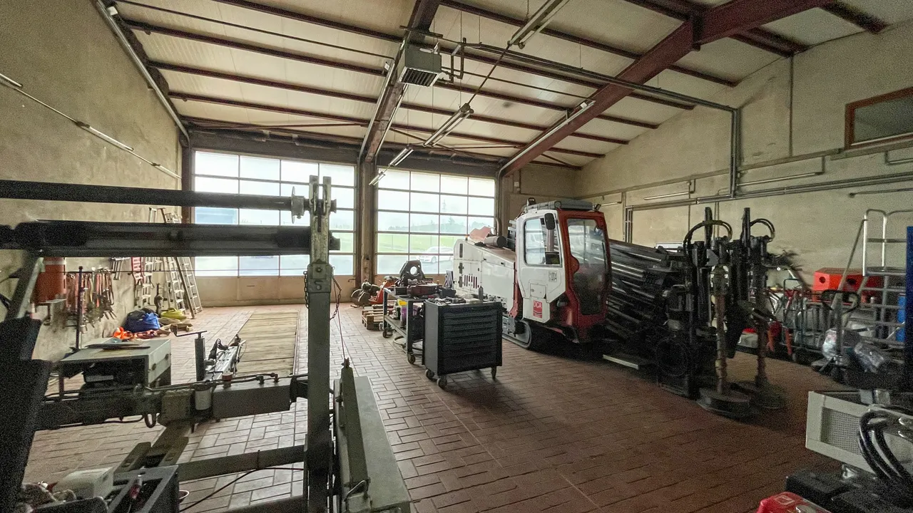 Das Hauptgebäude wurde Anfang der 80er Jahre auf einem rund 8.540 m² großen Grundstück gebaut und bietet eine großzügige Bürofläche mit Werkstatt von ca. 528 m². 1987/1988 wurde das Objekt um eine Gerätehalle für den Fuhrpark mit einer Fläche von ca. 391 m² erweitert. Die Freifläche beträgt ca. 7.621 m².
