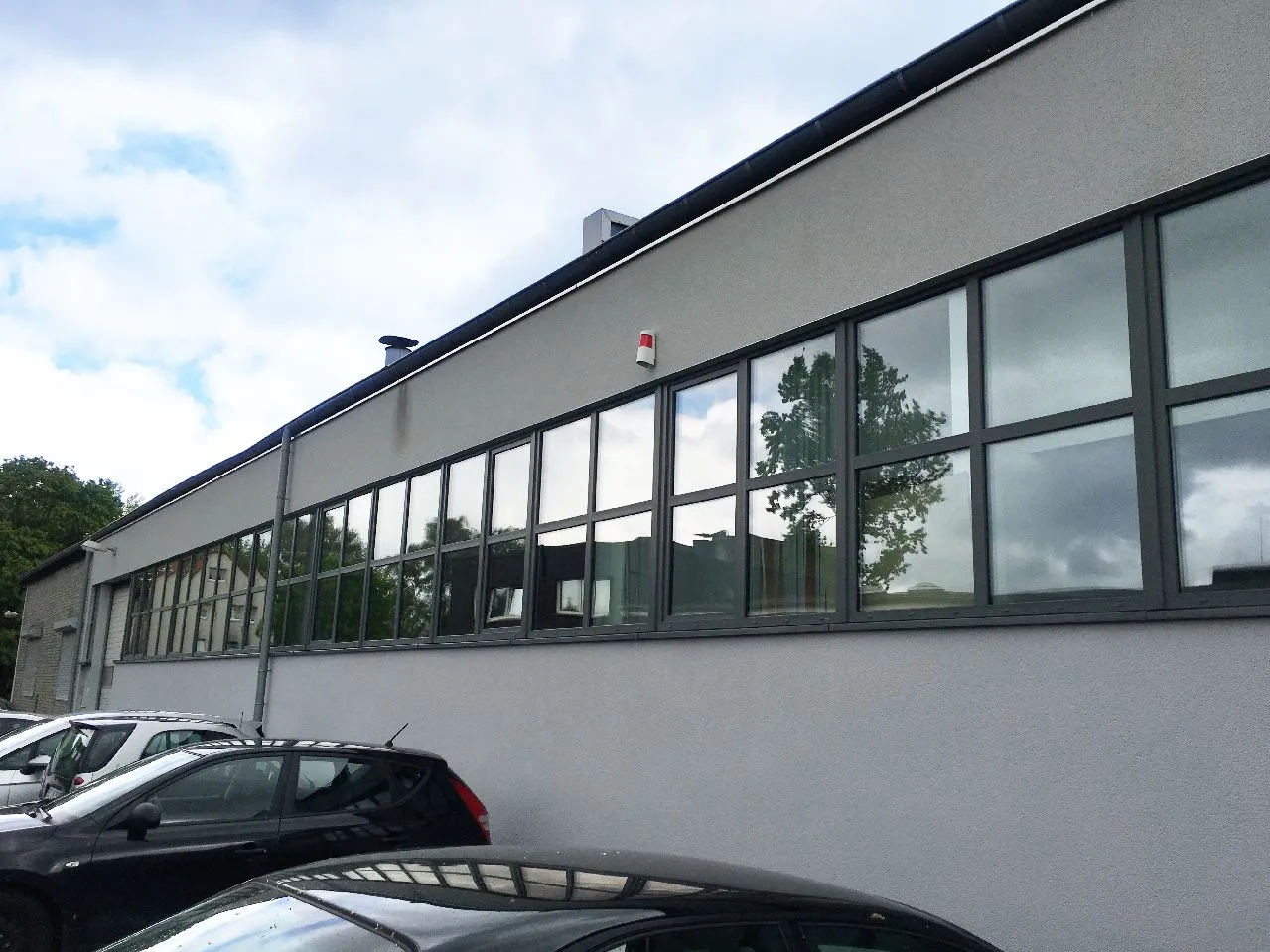 Hallenhöhe ca. 4,20 m UKB, Rauchwarnmelder, Industrieestrich, beheizt, Stahlbetonbauweise, Fensterband mit Isolierverglasung, Lichtkuppeln, ca. 135m² Bürofläche, Rundumfahrt möglich.