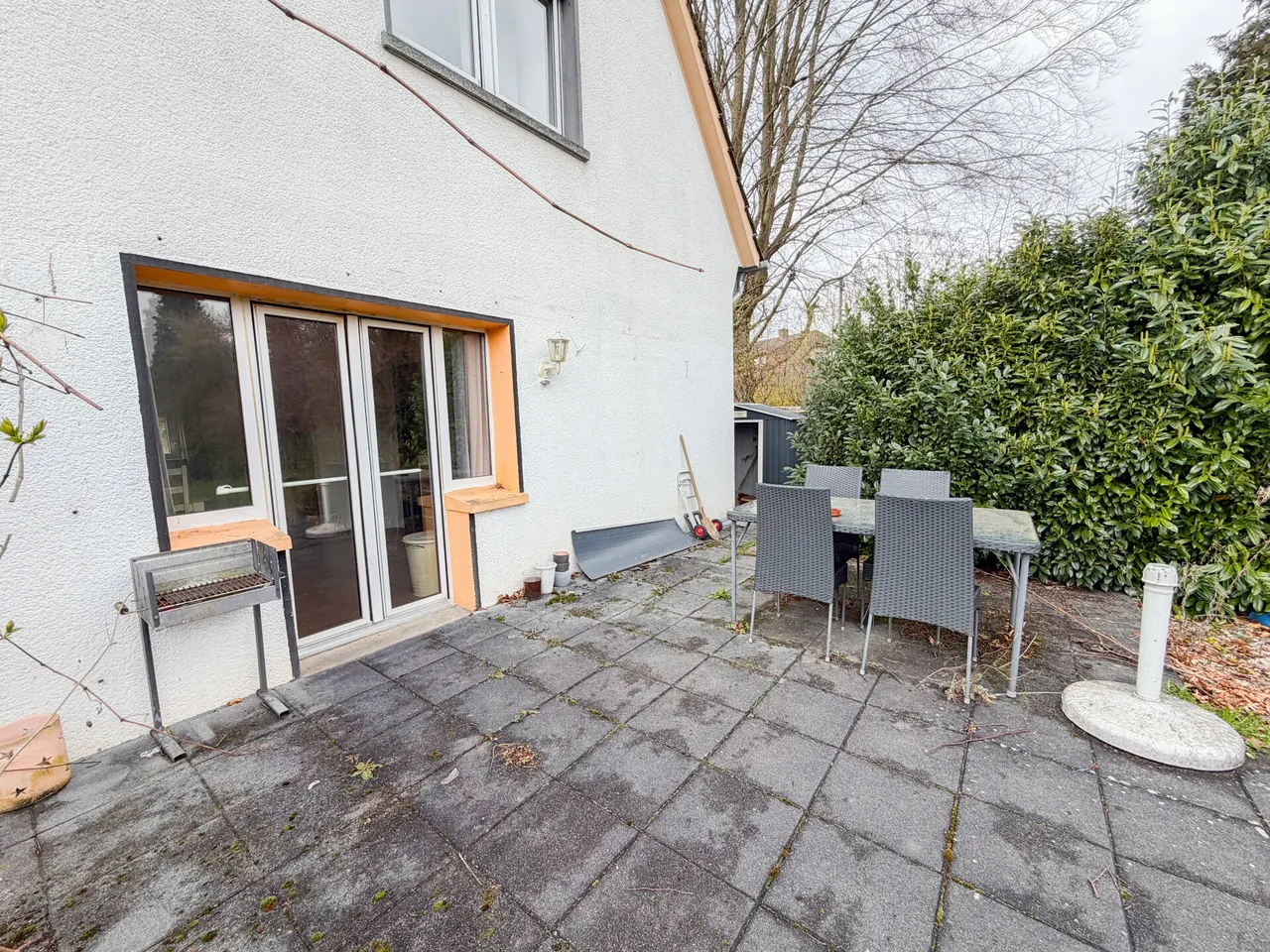 Der Kellerbereich bietet zusätzlichen Stauraum und flexible Nutzungsmöglichkeiten, während Garage und Zufahrt bequemes Parken direkt auf dem Grundstück ermöglichen.