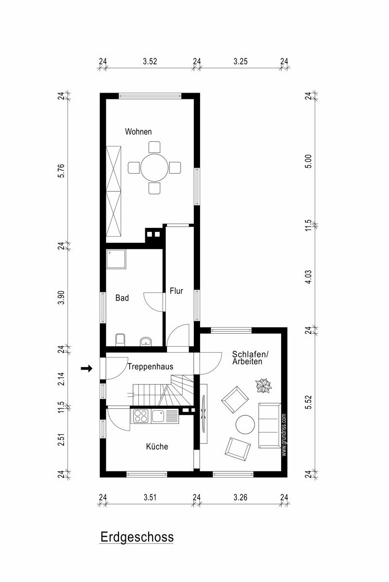 Für das neue Baugrundstück wird mit einer Größe von 440 m² bei einem Richtwert von 575 € pro Quadratmeter ein Grundstückswert von ca. 253.000,-€ abzüglich der Erschließungskosten, plus ca. 960 m² Gartenland mit ca. 50.000 € erreicht.