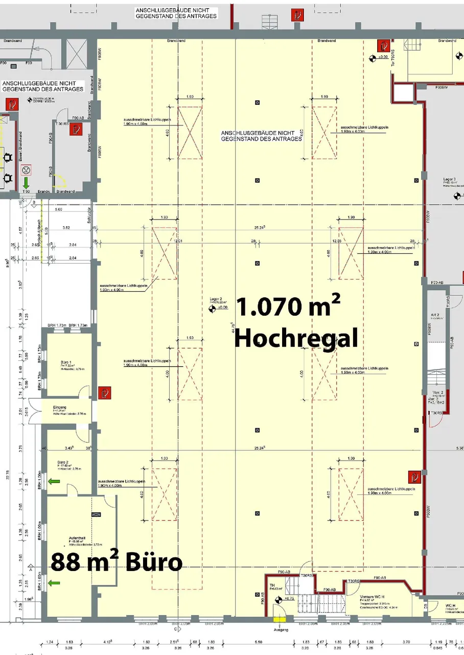 Das Objekt wird heute als Lager und Büro genutzt. Die Lagerfläche verfügt über eine Höhe von 5,30 6,00 Metern und kann sowohl als Lager- als auch als Produktionsfläche genutzt werden. Zugänglich ist diese Fläche über zwei Rolltore, sowie über die Lagerverwaltung. Diese verfügt über einen eigenen Eingang und erstreckt sich über ca. 88 m² moderne Bürofläche. Hier gibt es zwei Einzelbüros, sowie ein Großraumbüro. Diese sind ebenfalls sehr modern und hell gestaltet und verfügen über heutige Technikstandards.