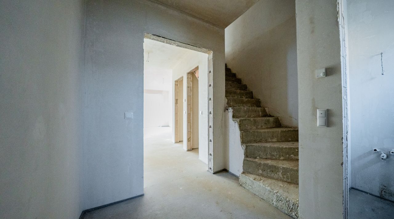 Die Immobilie wird im Innenausbauzustand übergeben. Bodenbeläge, Malerarbeiten, Sanitärausstattung, die Gestaltung der Außenanlagen sowie die Zufahrt und der Vorgarten können vom Käufer individuell umgesetzt werden. Strom-, Wasser- und Heizungsleitungen sowie eine Luftwärmepumpe sind bereits installiert.