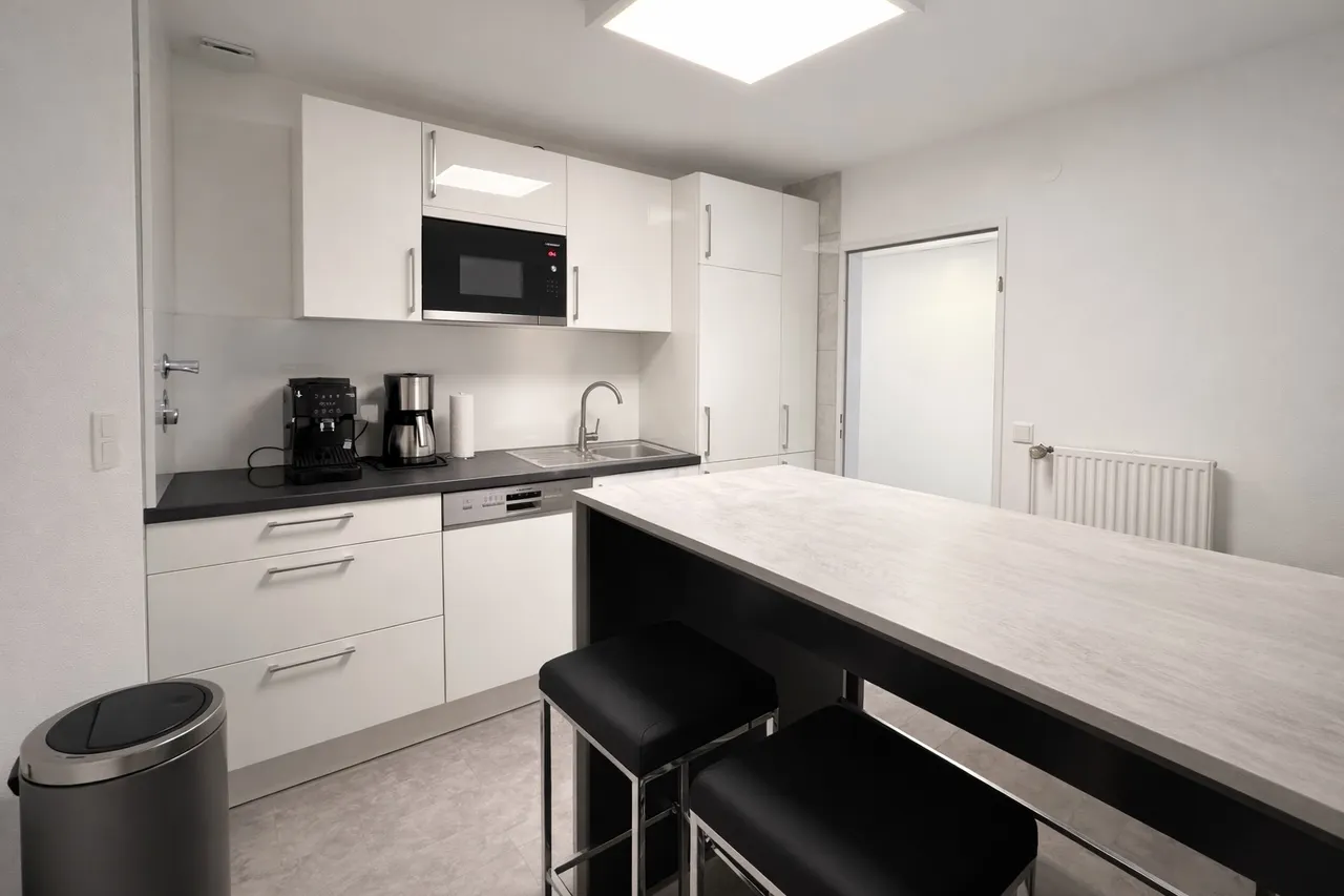 Ein besonderes Highlight sind die großzügigen Besprechungs- und Gruppenräume, die sich hervorragend für Meetings, Schulungen oder Veranstaltungen eignen. Ergänzt wird das Raumangebot durch weitere Funktionsräume, darunter Sanitäranlagen, Neben- und Lagerflächen sowie eine separate Teeküche pro Etage, die den Mitarbeitern komfortable Aufenthalts- und Pausenmöglichkeiten bieten.