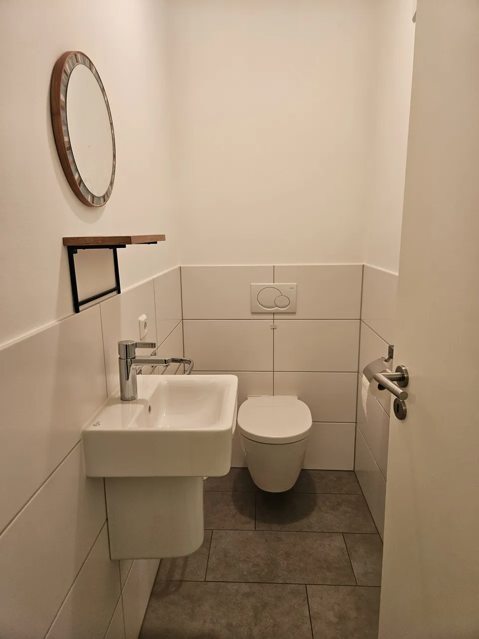 Gleich neben dem Eingangsbereich befindet sich ein praktischer Abstellraum, der bereits mit einer neuwertigen Waschmaschine und einem neuwertigen Trockner ausgestattet ist.